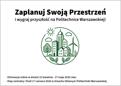 Szanowni Państwo, w tym roku już po raz jedenasty organizujemy w Politechnice Warszawskiej konkurs o indeks na studia na kierunku Gospodarka Przestrzenna. (więcej…)