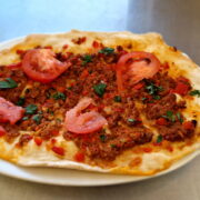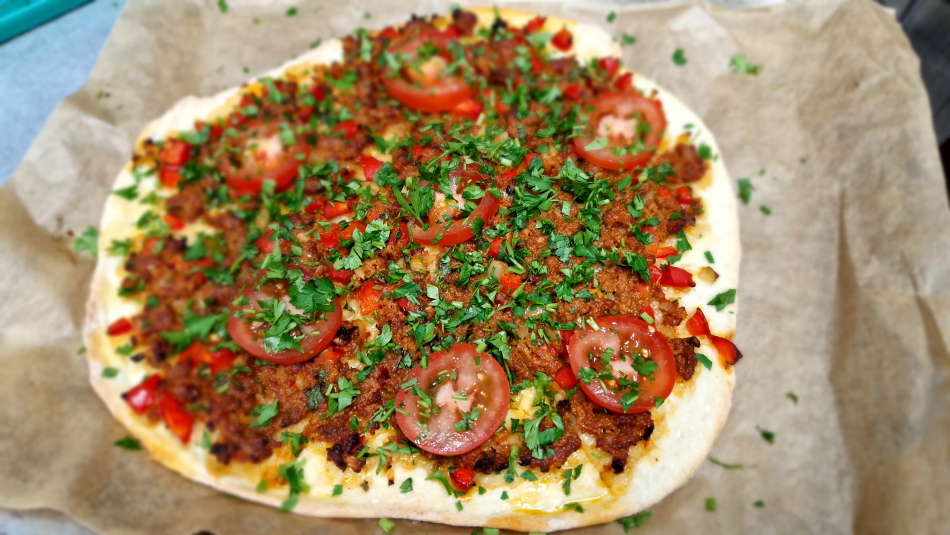 – Lahmacun – „turecka pizza” z jagnięciną i pietruszką,