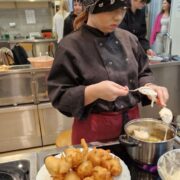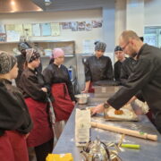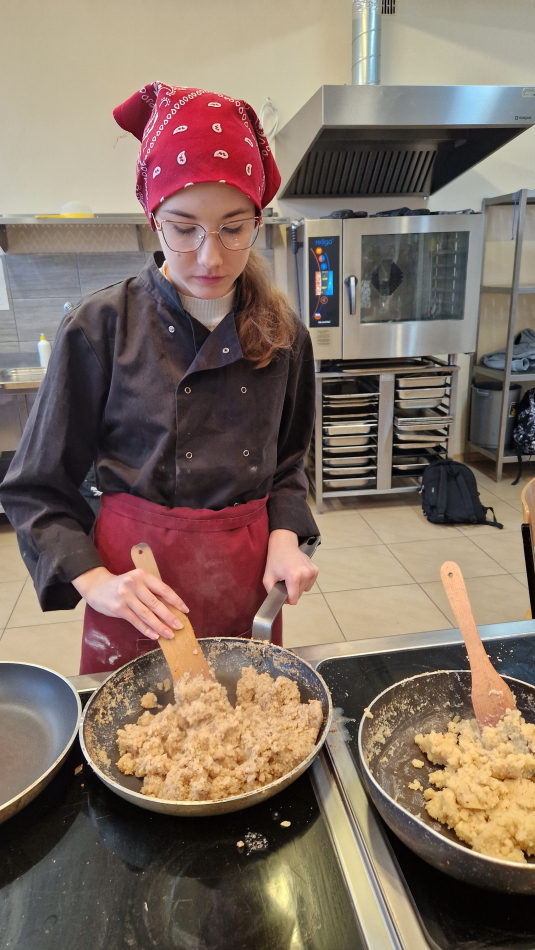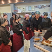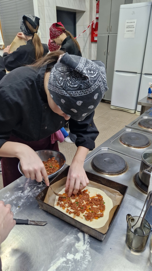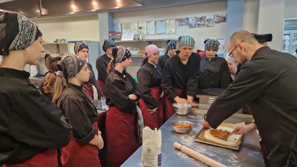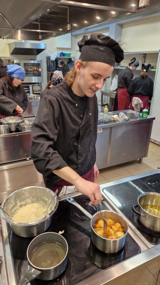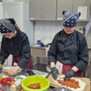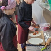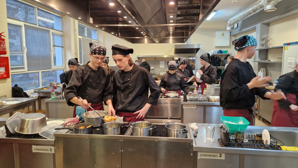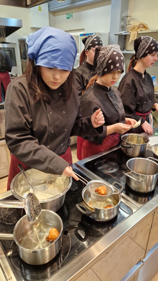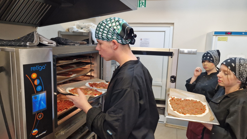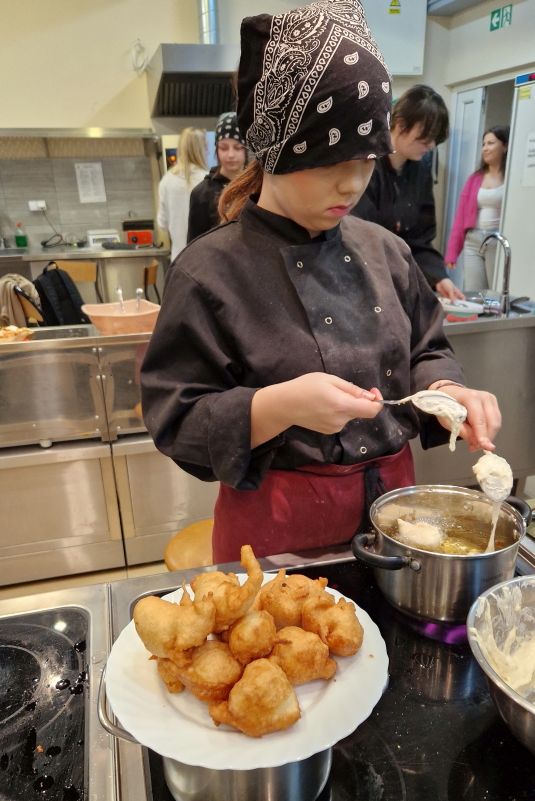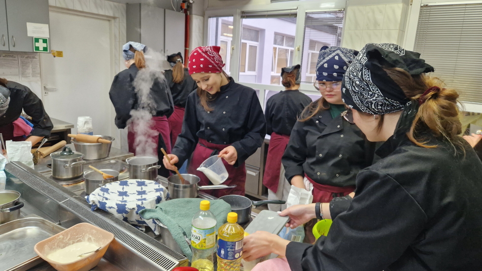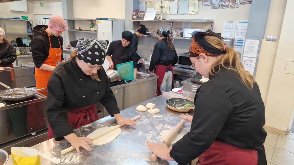 Uczniowie doskonalili umiejętności pracy z przyprawami, m.in. pul biber, papryka wędzona, a także techniki formowania i smażenia ciasta oraz przygotowywania nadzienia do potraw. Wspólne gotowanie sprzyjało doskonaleniu umiejętności współpracy i kreatywności, a końcowa degustacja stała się okazją do wymiany wrażeń i rozmów o możliwościach zastosowania poznanych przepisów w praktyce gastronomicznej.