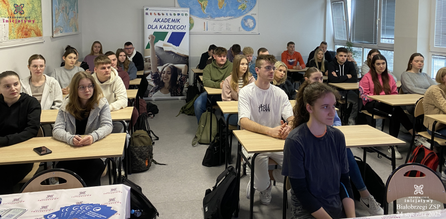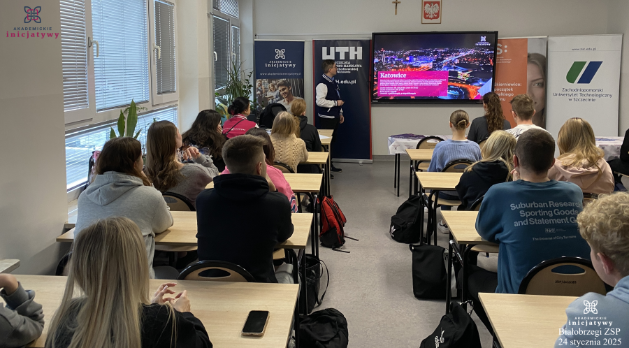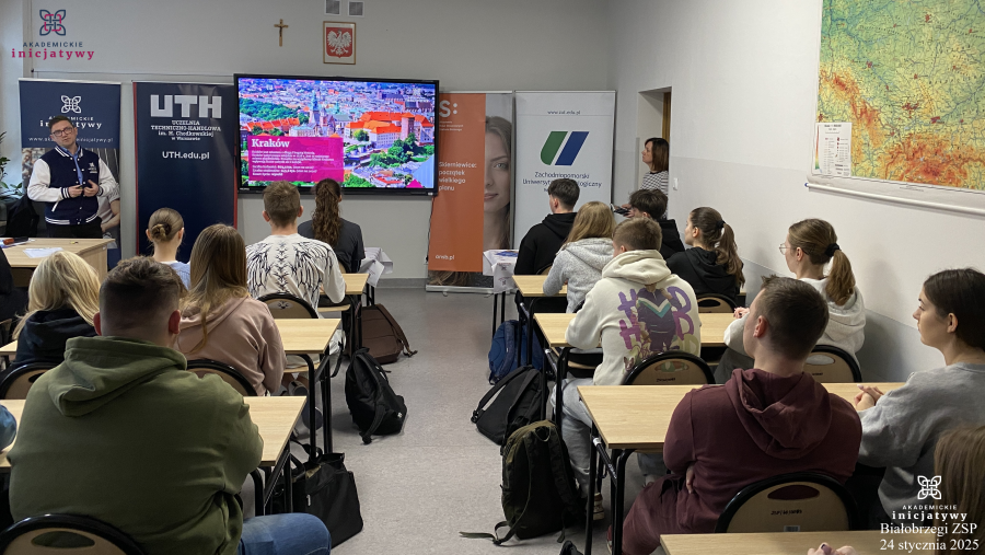 W piątek 24.01.2025 roku w ramach Akademickich Spotkań uczniowie klas piątych technikum uczestniczyli w wykładzie, którego tematem było: ,,Jak świadomie wybrać swoją przyszłość akademicką?”
