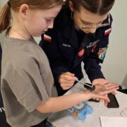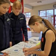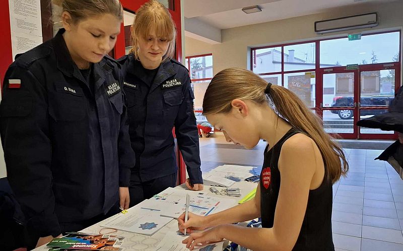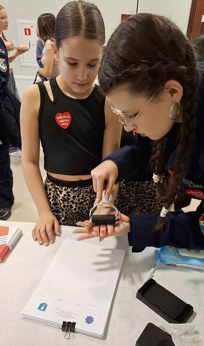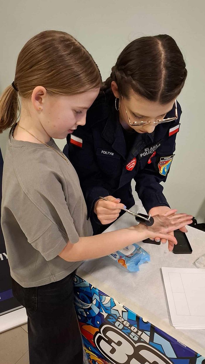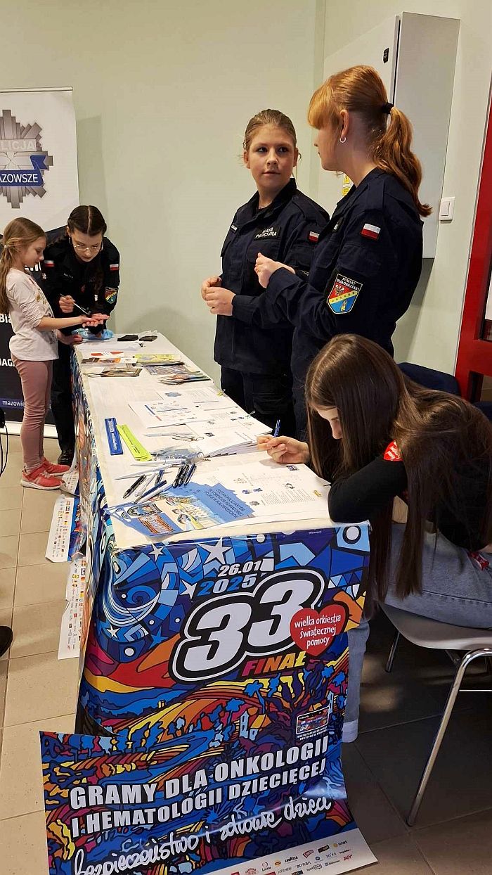 W tegorocznym finale Wielkiej Orkiestry Świątecznej Pomocy, który zorganizowany został w hali sportowej w Białobrzegach, nie zabrakło także naszych uczennic z klas policyjnych. Dziewczęta, wspólnie z funkcjonariuszami Komendy Powiatowej Policji w Białobrzegach przygotowały stoisko pełne atrakcji dla uczestników finału. Perfekcyjne wykonywanie przez Kingę daktyloskopii, czyli pobieranie odbitek linii papilarnych palców rąk, cieszyło się ogromnym zainteresowaniem dzieci i dorosłych. Weronika i Oliwia z pasją opowiadały o zajęciach w klasach policyjnych naszej szkoły. Przekazywały informacje o zajęciach z techniki kryminalistycznej, zakresu prawa jak i o zajęciach strzeleckich. Udział uczennic w tak ważnym wydarzeniu stał się doskonała okazją do promocji klas policyjnych. Pokazał również, że młodzież potrafi angażować się w działania społeczne i z sukcesem łączyć naukę z praktycznym wsparciem dla swojej społeczności. Edukacja w naszej szkole to nie tylko teoria, ale także aktywne działania.