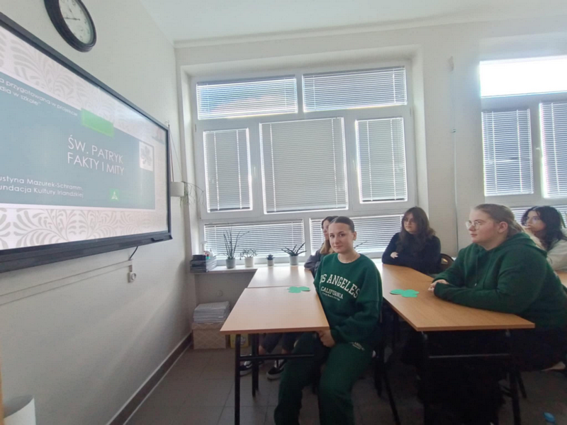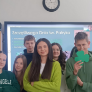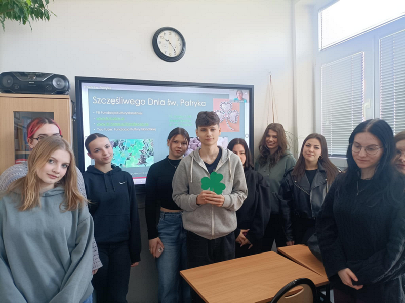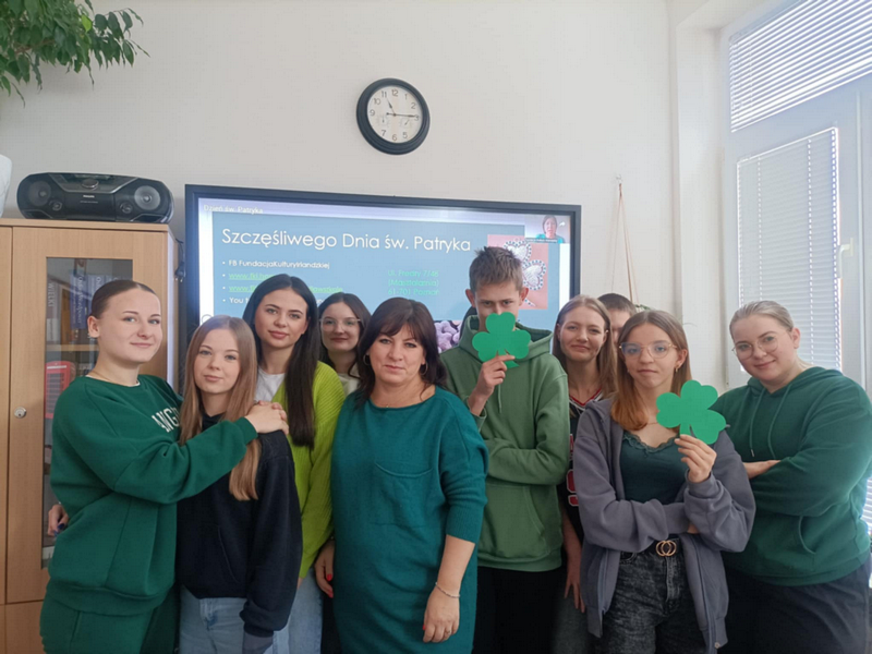 17 marca obchodziliśmy dzień Świętego Patryka. Z tej okazji wielu uczniów naszej szkoły założyło na siebie zielone elementy garderoby. Dzięki współpracy z Fundacją Kultury Irlandzkiej uczniowie różnych klas mogli obejrzeć ciekawą prezentację o historii Św. Patryka, legendach, obrzędach w tym dniu w różnych zakątkach świata oraz o symbolach Świętego Patryka.