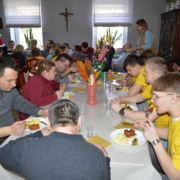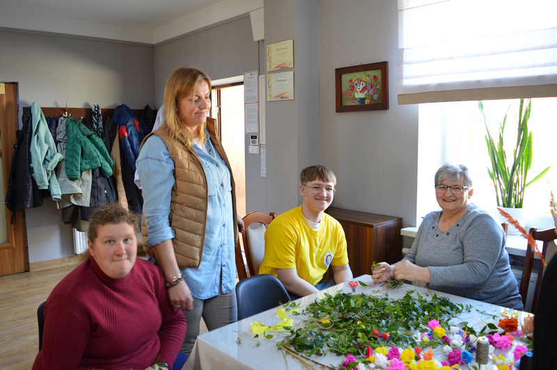 19 marca grupa wolontariuszy, pod opieką pań: Kamili Feruś i Agnieszki Malczewskiej, udała się z wizytą do Środowiskowego Domu Samopomocy w Jasionnej. To był wspaniale spędzony czas z wyjątkowymi ludźmi. Nasi uczniowie wspólnie z uczestnikami ŚDS przygotowywali palmy wielkanocne. Towarzyszyła temu radość, niezapomniane rozmowy, a także chwile wzruszenia. Mieliśmy okazję świętować imieniny Pana Józefa, któremu jeszcze raz życzymy wszystkiego, co najlepsze. Mamy nadzieję, że takich spotkań będzie więcej.