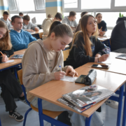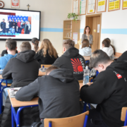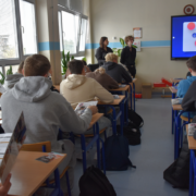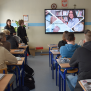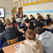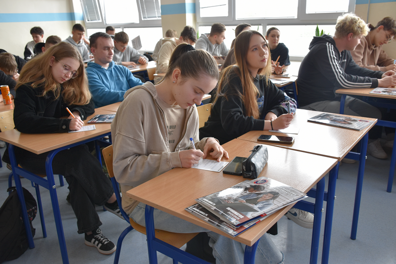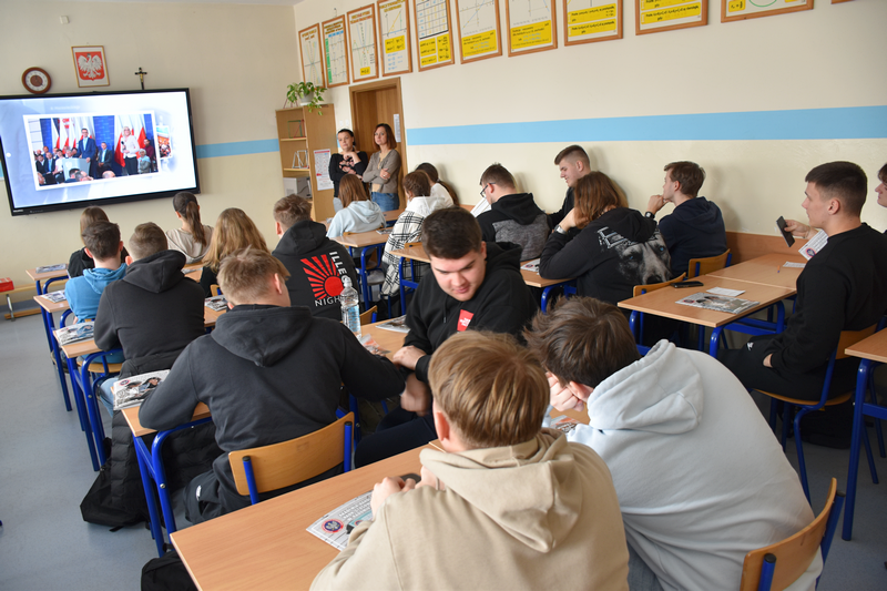 W dniu 18 marca br. uczniowie piątych klas technikum informatycznego oraz technikum logistycznego klasa wojskowa uczestniczyli w spotkaniu z przedstawicielami Akademii Handlowej Nauk Stosowanych w Radomiu. Podczas spotkania młodzież miała możliwość zapoznać się z ofertą edukacyjną uczelni oraz poznać zasady rekrutacji na studia wyższe.