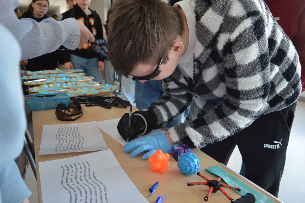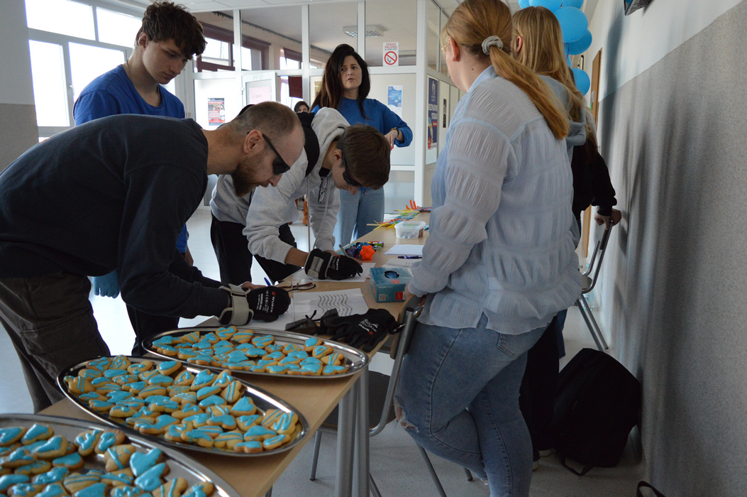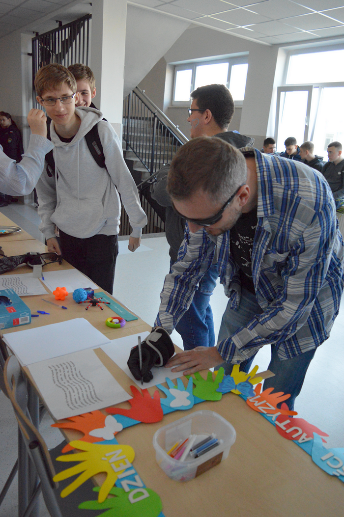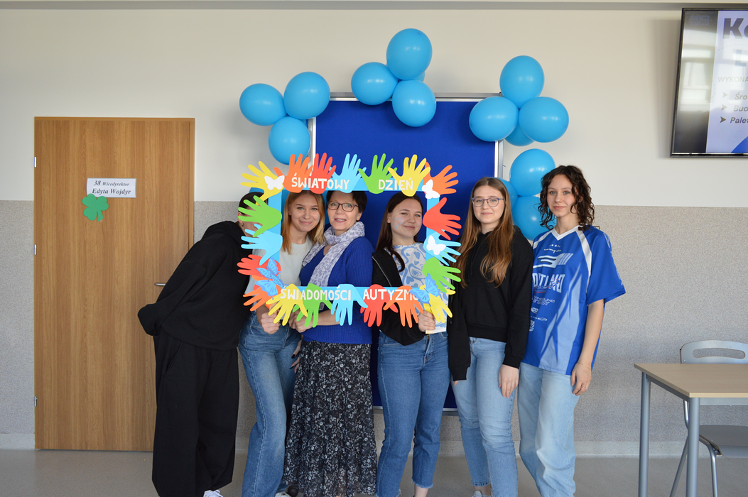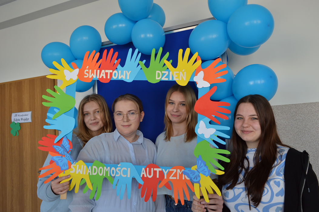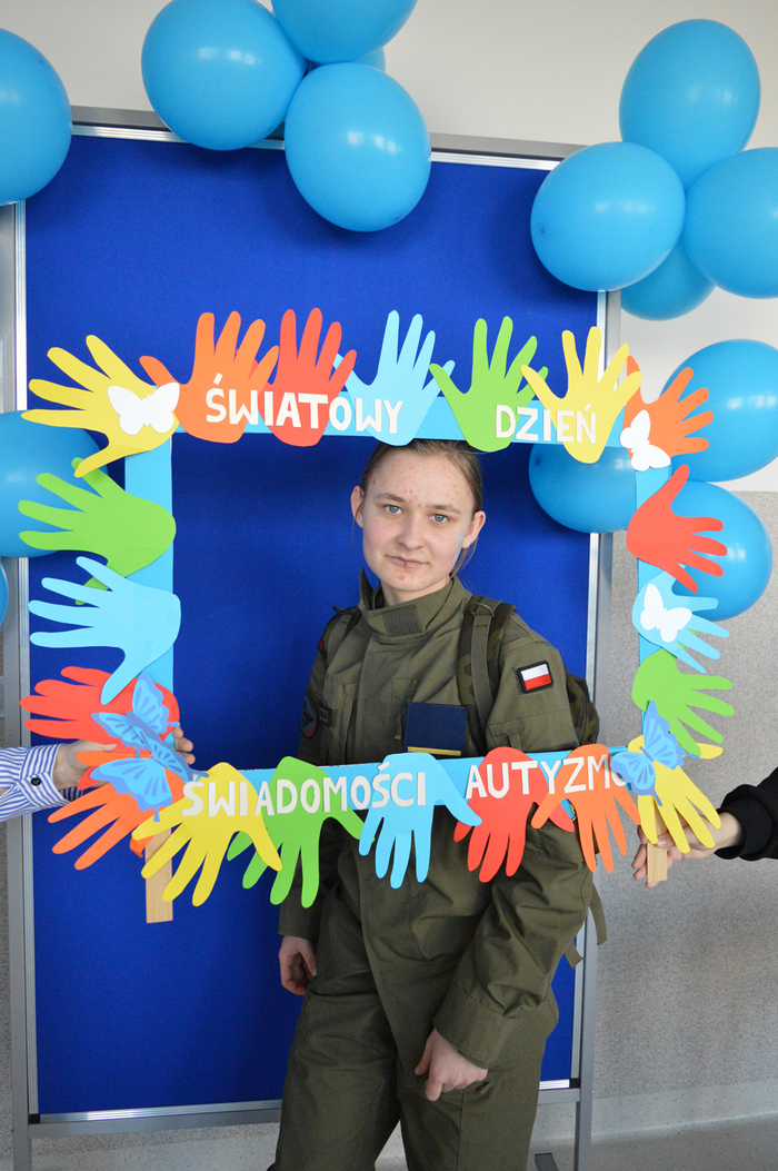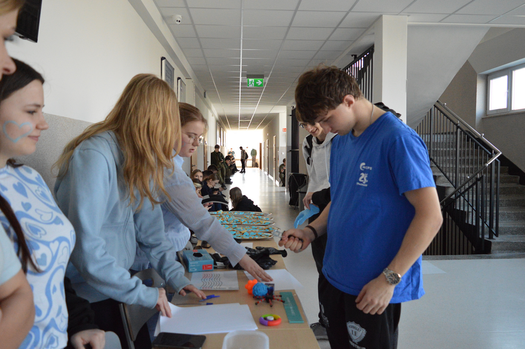 Pod takim hasłem przebiegły obchody Światowego Dnia Świadomości Autyzmu w ZSP. Na znak solidarności z osobami w spektrum, wolontariusze przygotowali stanowisko doświadczania świata. Każdy mógł tu sprawdzić, z jakimi trudnościami zmagają się na co dzień Ci, którzy doświadczają zaburzeń procesów sensorycznych. Uczniowie mogli zrobić sobie pamiątkowe zdjęcie na naszej oryginalnej ściance, a na poprawę humoru były pyszne, słodkie serduszka przygotowane przez uczniów klas 2THR i 1TLŻ.