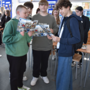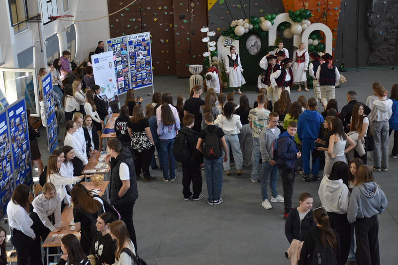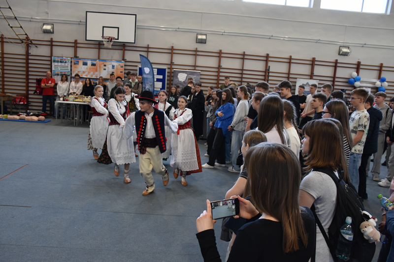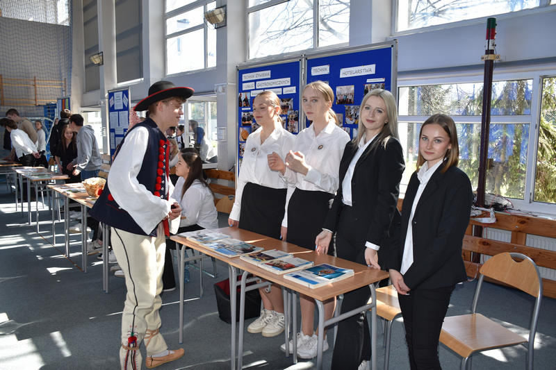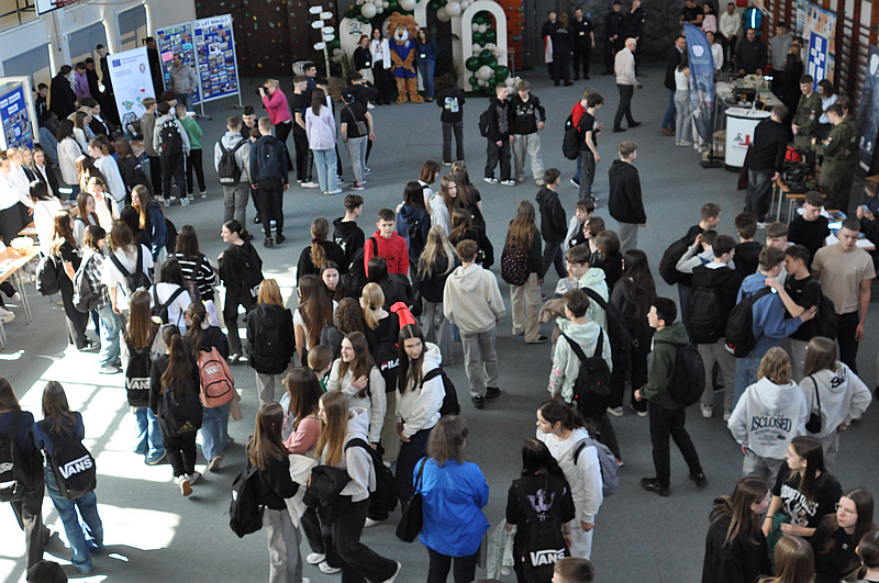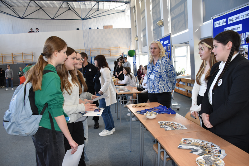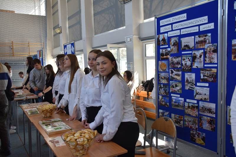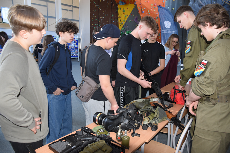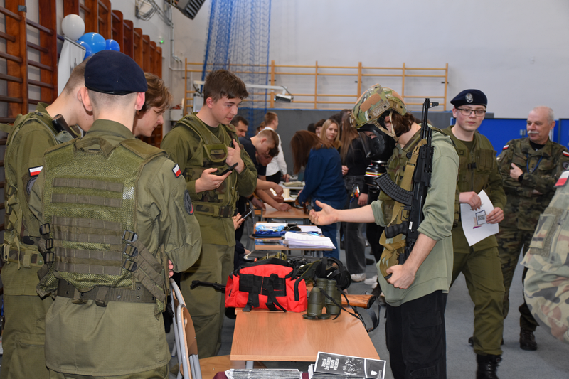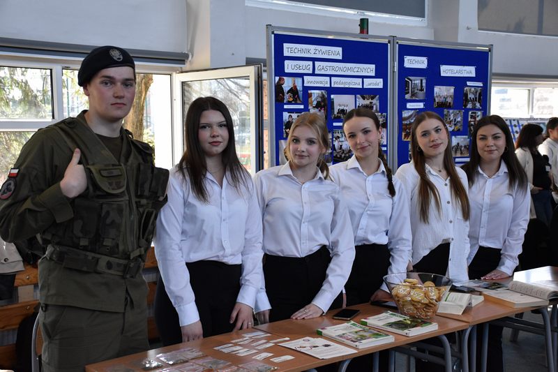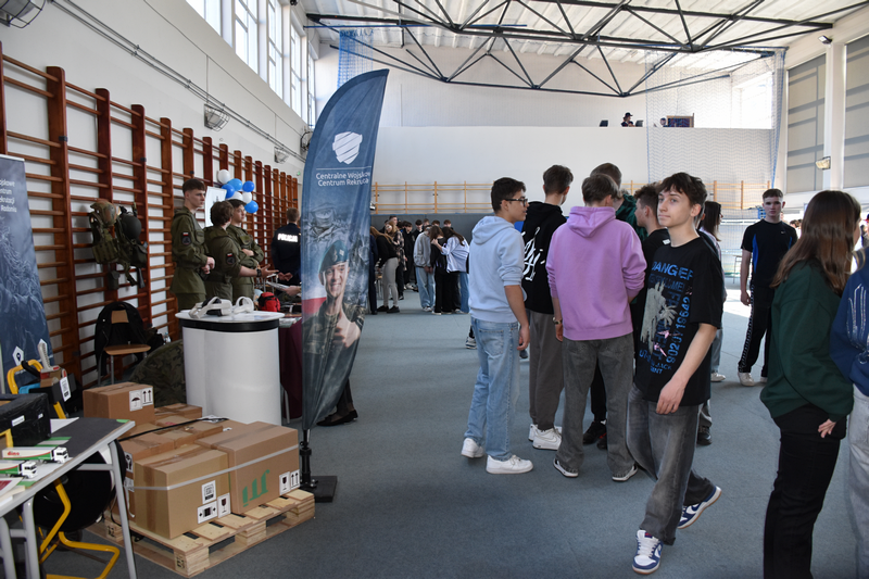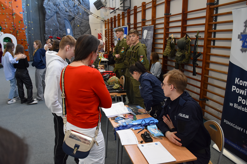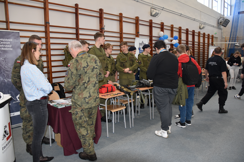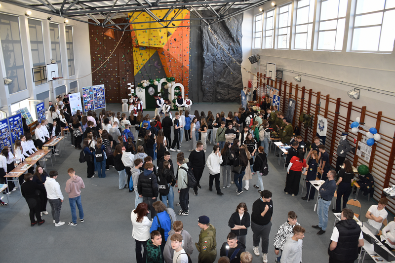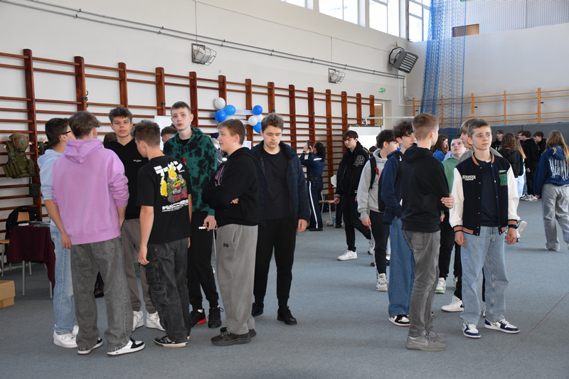 3 kwietnia 2025 roku zorganizowaliśmy w naszej szkole Dzień otwarty dla tegorocznych ósmoklasistów, ich rodziców i opiekunów. Chcieliśmy, aby uczniowie szkół podstawowych mieli możliwość zapoznania się z ofertą edukacyjną Zespołu Szkół Ponadpodstawowych w Białobrzegach i tym samym z łatwością podjęli decyzję o dalszej drodze kształcenia. Nasi uczniowie, wraz z nauczycielami, przygotowali w sali gimnastycznej stoiska, przy których każdy zainteresowany mógł uzyskać szczegółowe informacje na temat konkretnego profilu kształcenia. Odwiedzający mogli także porozmawiać z przedstawicielami służb mundurowych – wojska i policji, którzy mieli w tym dniu swoje stoiska pokazowe.