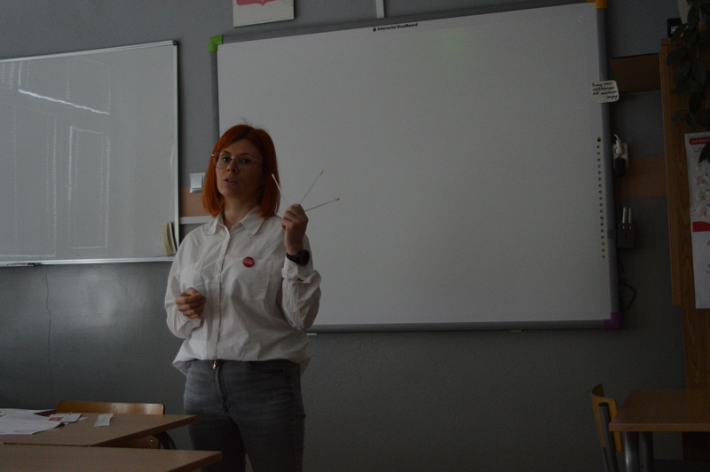 Specjalnym gościem podczas spotkań z młodzieżą była nasza absolwentka Zuzanna P. – była wolontariuszka szkolnych akcji, która podzieliła się swoimi doświadczeniami związanymi z rejestracją w bazie dawców DKMS, a przede wszystkim doświadczeniami w zakresie ratowania życia drugiej osoby poprzez oddanie szpiku. Zuzanna na początku marca 2025 r. oddała szpik (z talerza kości biodrowej) choremu 6-letniemu chłopcu z Hiszpanii ratując jego życie. Rozmawiając z naszymi uczniami była żywym świadectwem pięknej, bezinteresownej pomocy drugiemu człowiekowi, któremu ofiarowała coś więcej jak cząstkę siebie – ofiarowała życie.