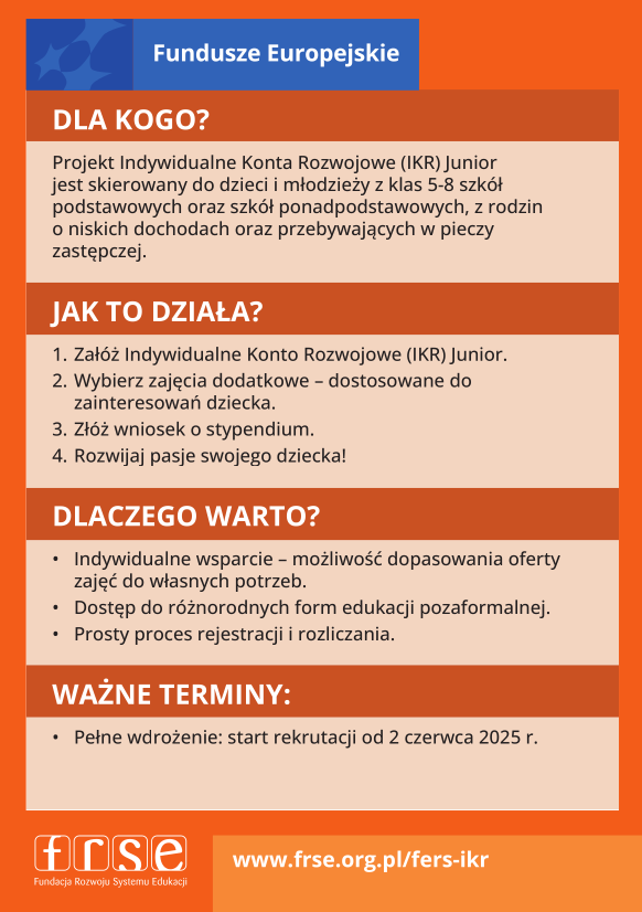 Projekt Indywidualne Konta Rozwojowe (IKR) Junior- trwa nabór wniosków