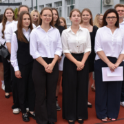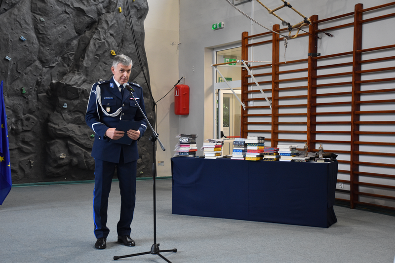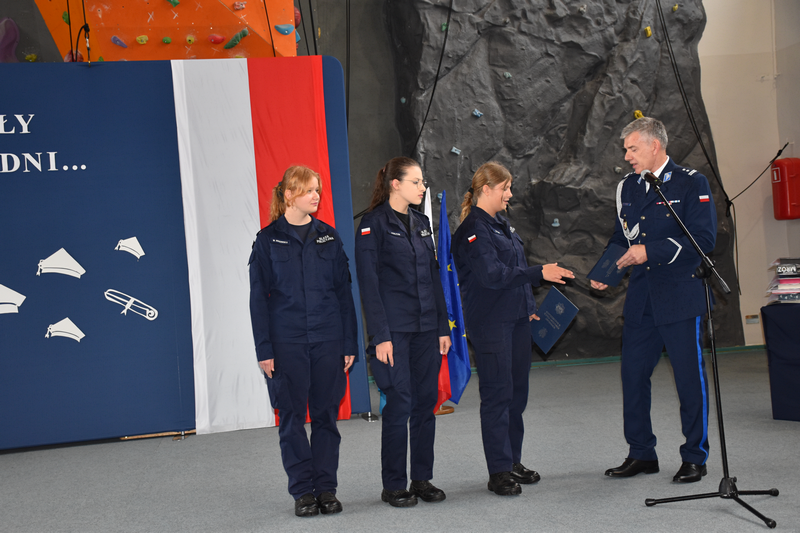 I zastępca Komendanta Powiatowego Policji w Białobrzegach mł. insp. Paweł Ozga wręczył dyplomy i upominki trzem uczennicom: Weronice Mikowskiej i Oliwii Siarze z klasy 2tlp oraz Kindze Fołtyn z klasy 3Tlp za zaangażowanie i pomoc w akcjach społecznościowych organizowanych przez Powiatową Komendę Policji w Białobrzegach.