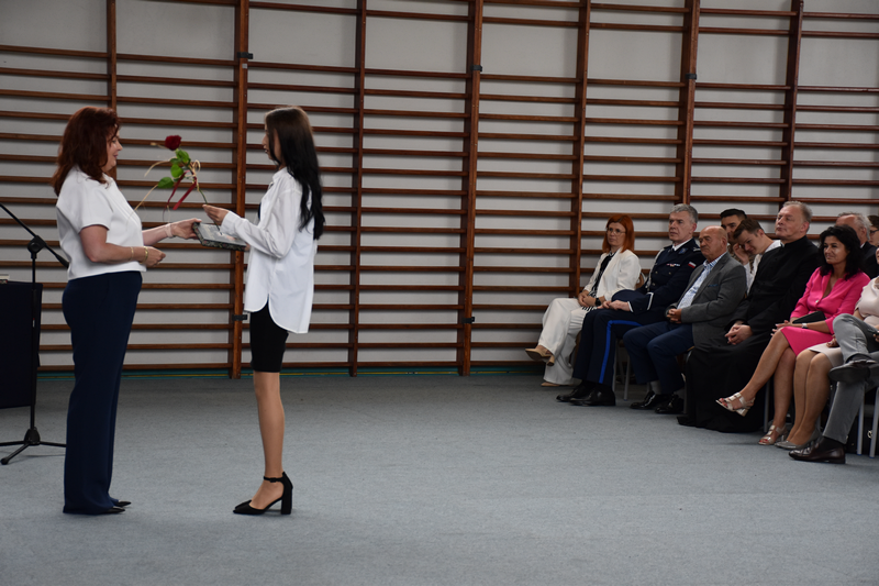 Zakończenie roku szkolnego to przez wielu wyczekiwany moment, gdyż kończy się pewien etap, w którym jest czas na podsumowania i refleksje dotyczące tego, co udało się osiągnąć, a nad czym należy jeszcze pracować. Pani Dyrektor w słowach skierowanych do wszystkich obecnych podkreśliła, że czas płynie nieubłaganie i warto go dobrze wykorzystywać. Pogratulowała tym, którzy dobrze wykorzystali czas w tym roku szkolnym i osiągnęli bardzo dobre wyniki.