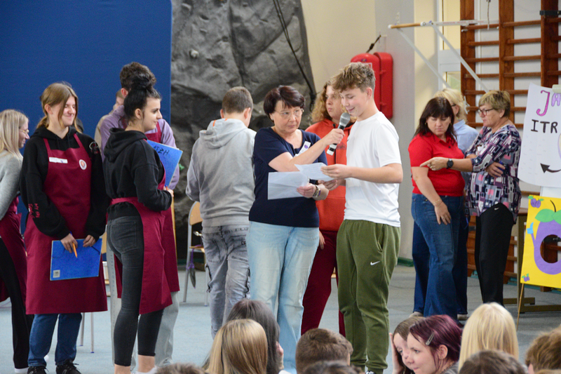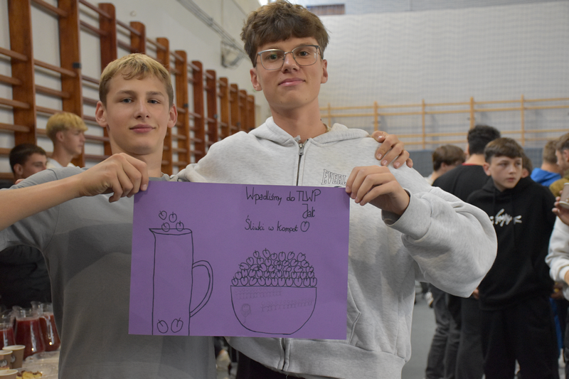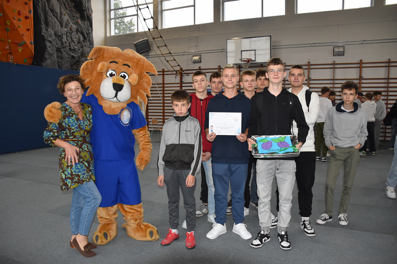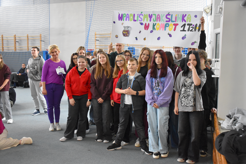 Doping był głośny, walka o pierwsze miejsce zaciekła, plakaty bardzo plastyczne. Wszyscy okazali się zwycięzcami. Ale po obliczeniu punktów okazało się, że na pierwsze miejsce zasłużyła klasa branżowa – 1A, w nagrodę otrzymali blachę kruchego ciasta ze śliwkami, do podziału z wychowawcą.