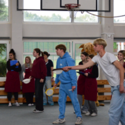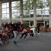 „I WPADŁY„ pierwsze klasy i wzięły udział w zdrowej rywalizacji między sobą a czekały ich rzuty do celu (w środek śliwki), slalom śliwkowy i tenis śliwkowy, skoki na czas przez skakankę i burze mózgów – dobieranie rymów w wierszach o śliwkach i quiz wiedzy o tym cennym owocu.
