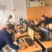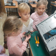 Mali odkrywcy mieli okazję zobaczyć, jak wygląda prawdziwa pracownia informatyczna , a nawet własnoręcznie… rozebrać komputer!