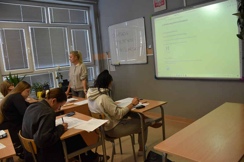 W środę 23 października 2025r. punktualnie o godz.12:00 w naszej szkole odbyła się IV Edycja Ogólnopolskiej Olimpiady Umiejętności Hotelarskich organizowanej przez Szkołę Główną Handlową w Warszawie wraz z Fundacją Polskie Hotele Niezależne.
