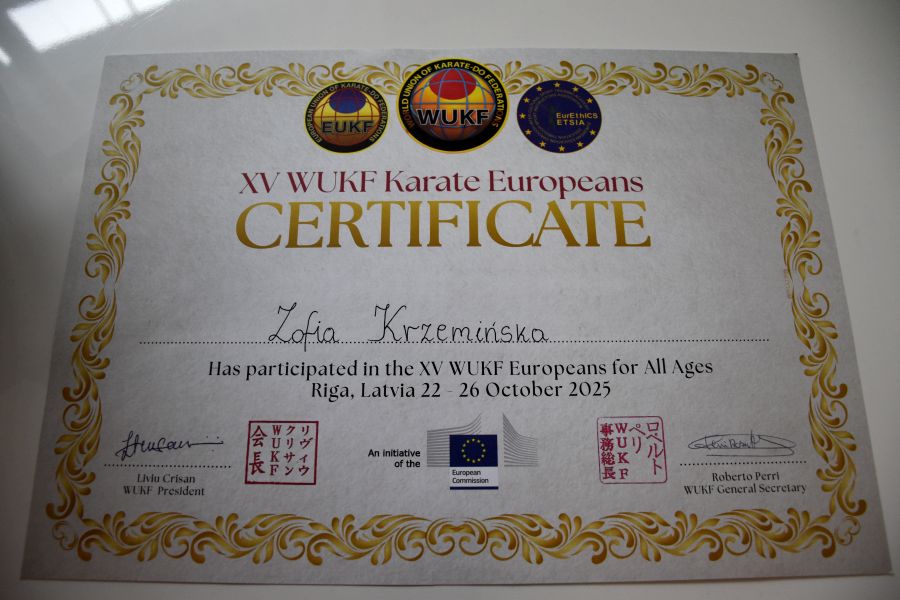 W dniach 22 -26 października 2025 r. uczennica naszej szkoły Zofia Krzemińska, zawodniczka Klubu Karate Białobrzegi IKA Poland wzięła udział w 15 mistrzostwach Europy WUKF w karate, które odbyły się w Rydze.