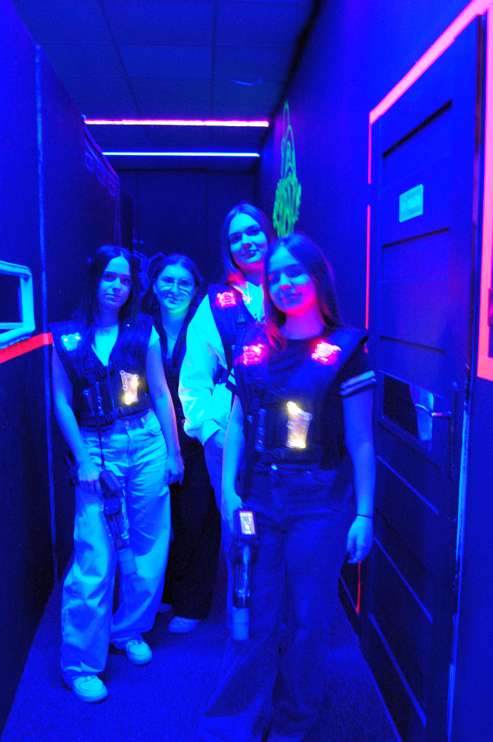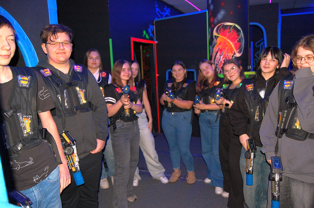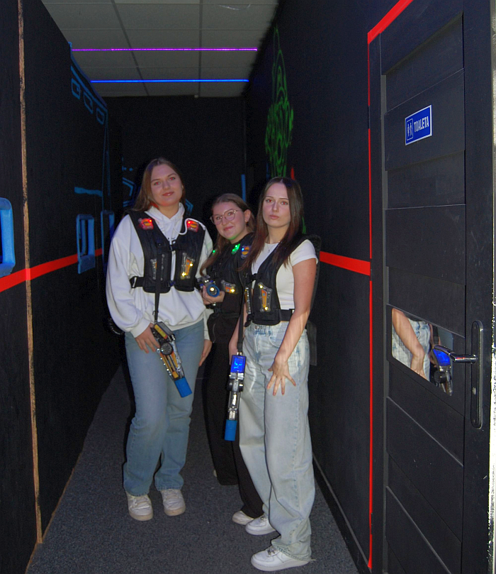 W dniu 4 listopada 2025 r. uczniowie klasy III THR pod opieką pani Ewy Leksińskiej oraz pani Magdaleny Marchewki wzięli udział w emocjonującej wycieczce do Warszawy, gdzie uczestniczyli w rozgrywkach Laserowego Paintballu znanego również jako Laser Tag. To był dzień pełen emocji, integracji i dobrej zabawy, która wymagała współpracy, strategii i szybkiego myślenia. Paintball laserowy to świetna i bezpieczna forma aktywności uczniów, dzięki której uczestnicy integrują się poprzez realizację wyznaczonych celów gry w specjalnie przygotowanych do tego salach i przy użyciu nowoczesnego sprzętu. Uczestnicy podzieleni zostali na drużyny i rozpoczęli grę próbując zdobyć jak najwięcej punktów poprzez trafianie w cel. Na zakończenie każdy uczestnik mógł zapoznać się z wynikami swoich działań zarówno w drużynie, jak i indywidualnie.