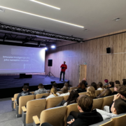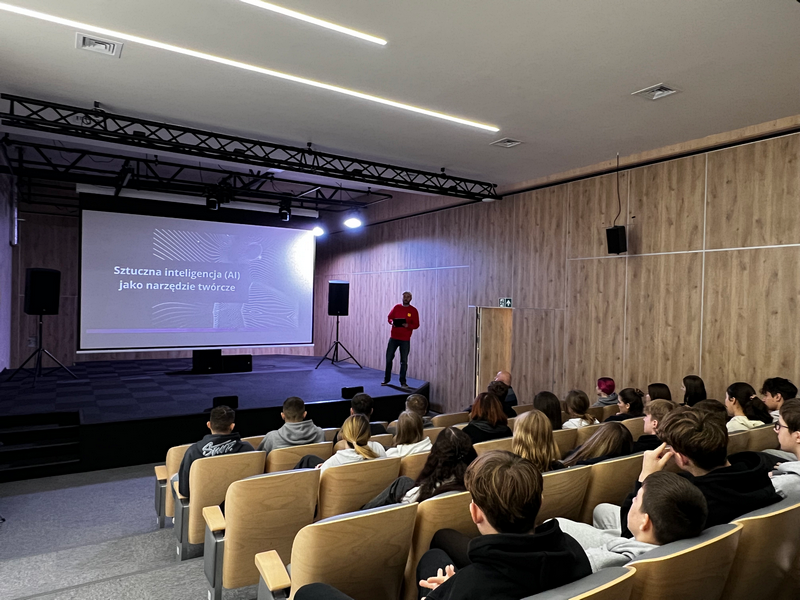 Przed projekcją filmu wysłuchaliśmy prelekcji na temat szans i zagrożeń zastosowania technologii AI w sztuce. Dopełnieniem projektu był pokaz 5 filmów krótkometrażowych, który dotyczył różnych rodzajów sztuki wizualnej.