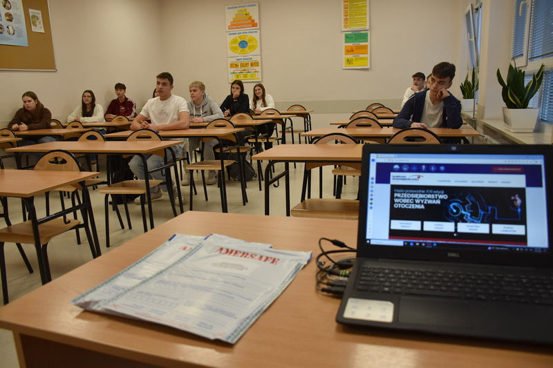W dniu 5 grudnia 2025 roku 12 uczniów z klasy III THR brało udział w XXI Olimpiadzie Przedsiębiorczości. Hasło XXI edycji OP: Przedsiębiorstwo wobec wyzwań otoczenia. Uczniowie mieli do rozwiązania test składający się z 50 pytań. Wyniki eliminacji szkolnych będą znane 19 stycznia 2026 roku.