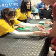 Wspaniali wolontariusze, pod opieką pań Kamili Feruś i Małgorzaty Kisiel, po raz kolejny okazali wielkie serca. Poświęcili swój wolny czas, by być tam, gdzie Ich potrzebowano — czuwali nad dobrą zabawą najmłodszych i wraz z naszym milusińskim Staśkiem stali się prawdziwymi ulubieńcami dzieci.