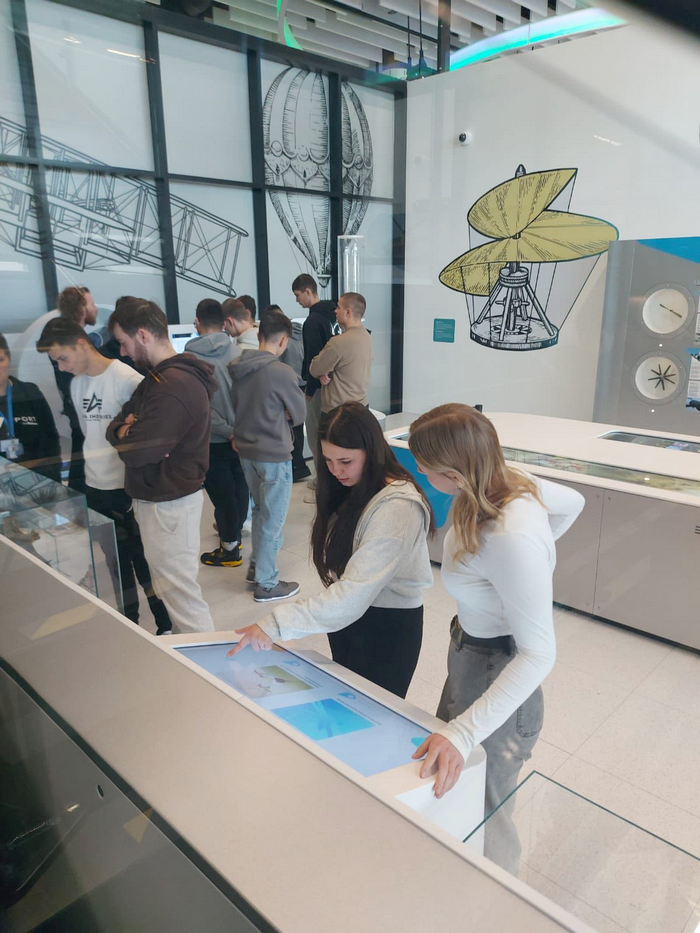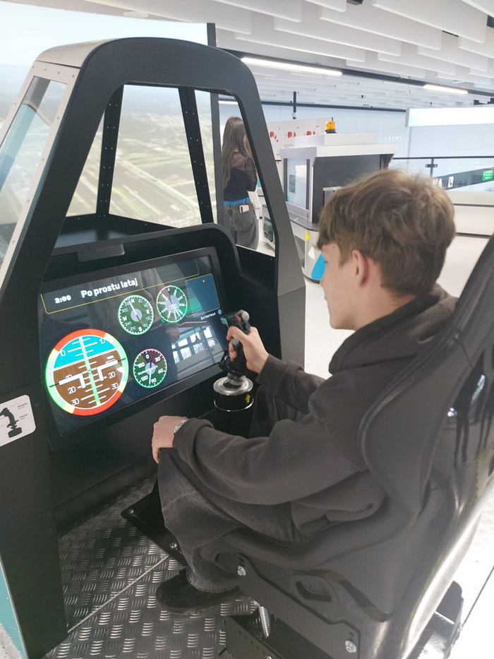 Następnie uczestnicy udali się na Lotnisko Warszawa–Radom, gdzie zwiedzili nowoczesne, multimedialne centrum edukacyjno-rozrywkowe Flyport by Baltona. To wyjątkowe miejsce łączy funkcje muzeum, wystawy, centrum edukacyjnego i strefy zabawy. Flyport mieści się w ogólnodostępnej części terminala i został stworzony przez firmę Baltona, od lat współpracującą z polskimi portami lotniczymi.