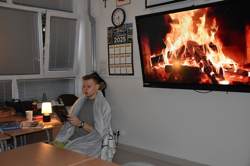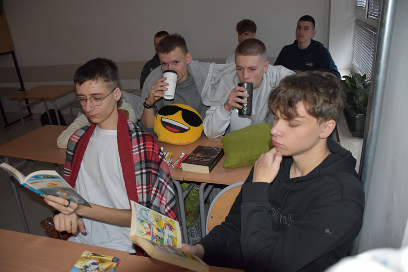 W piątkowy poranek 12 grudnia 2025 roku uczniowie klasy 3TI, podczas lekcji języka polskiego, zorganizowali „Poranek czytelniczy”. W przytulnej atmosferze- były kocyki, poduszki, rozgrzewająca herbata, a nawet kominek- uczniowie czytali fragmenty ulubionych książek. Mieliśmy doskonałą okazję, aby poznać swoje preferencje czytelnicze, jak również czytać dla innych i poczuć się jak w najlepszej strefie czytania. To wydarzenie potwierdziło, że czytać można wszędzie i o każdej porze!