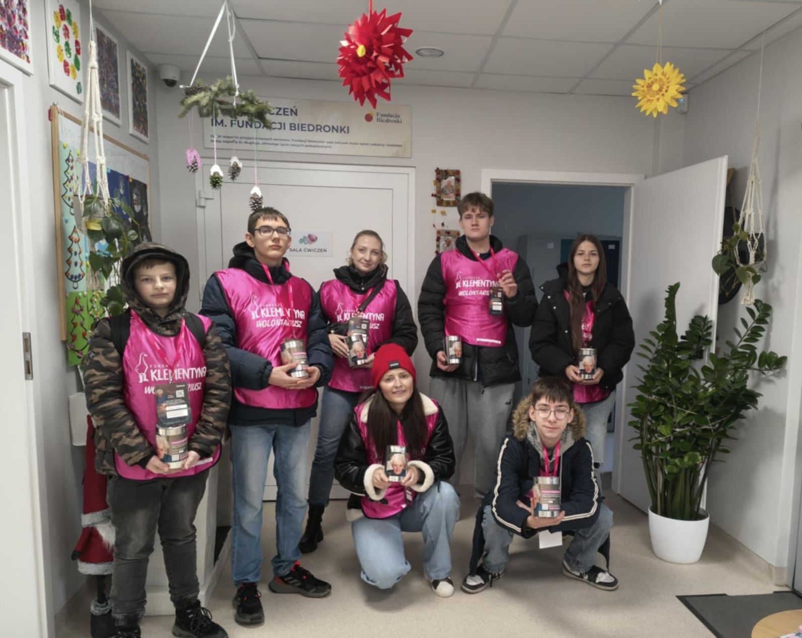 W minioną sobotę nasi wolontariusze włączyli się także w zbiórkę datków do puszek na rzecz Fundacji Klementyna, pokazując, że pomoc ma wiele form . Był to czas ciężkiej pracy, ale również integracji z dziećmi i młodzieżą z innych szkół – przy stole pełnym słodkości i wyśmienitej pizzy .