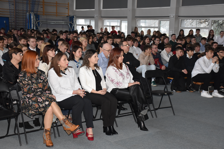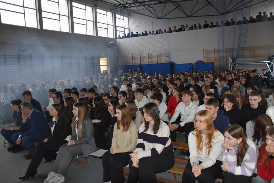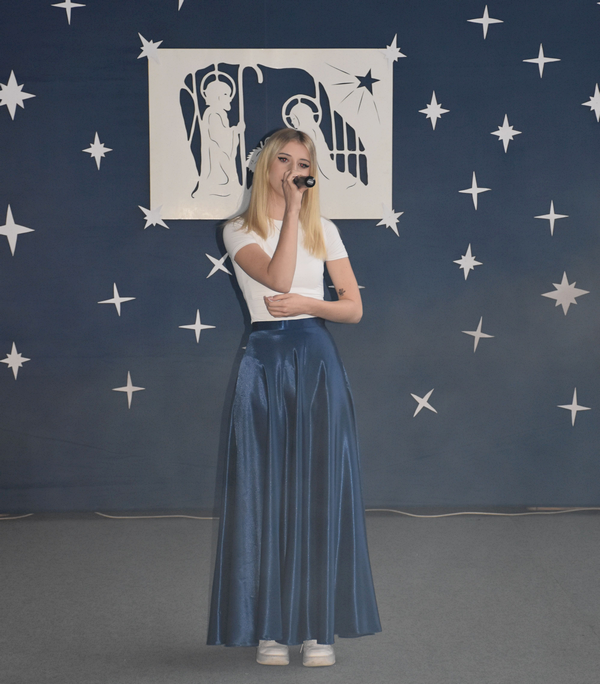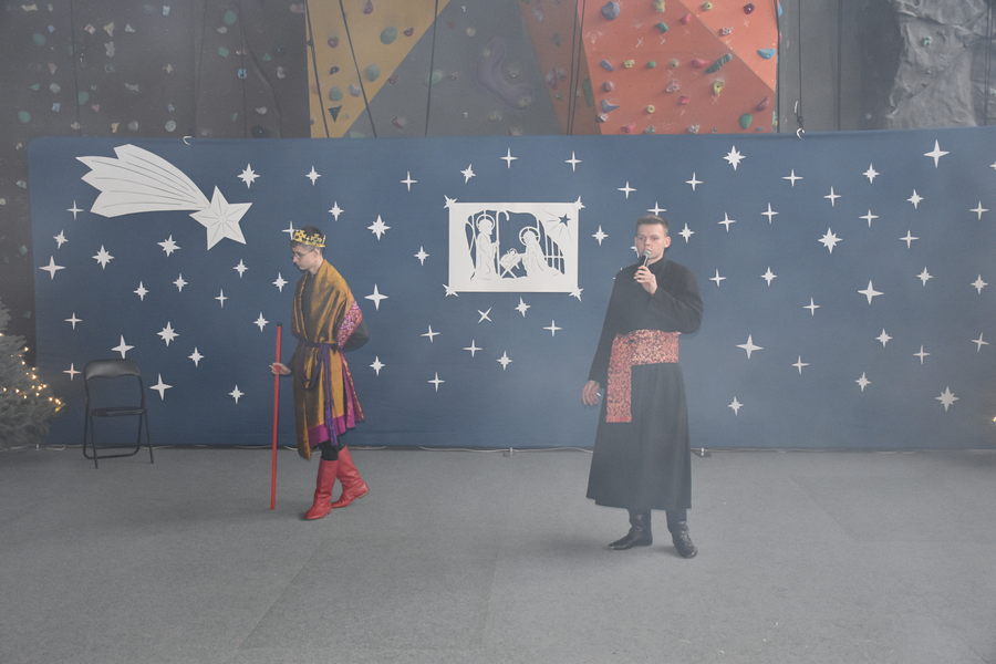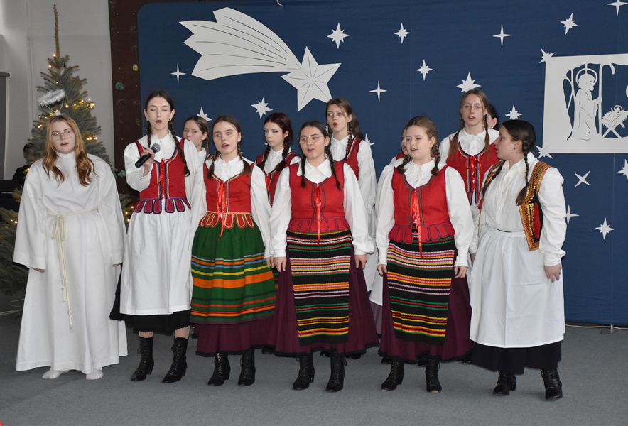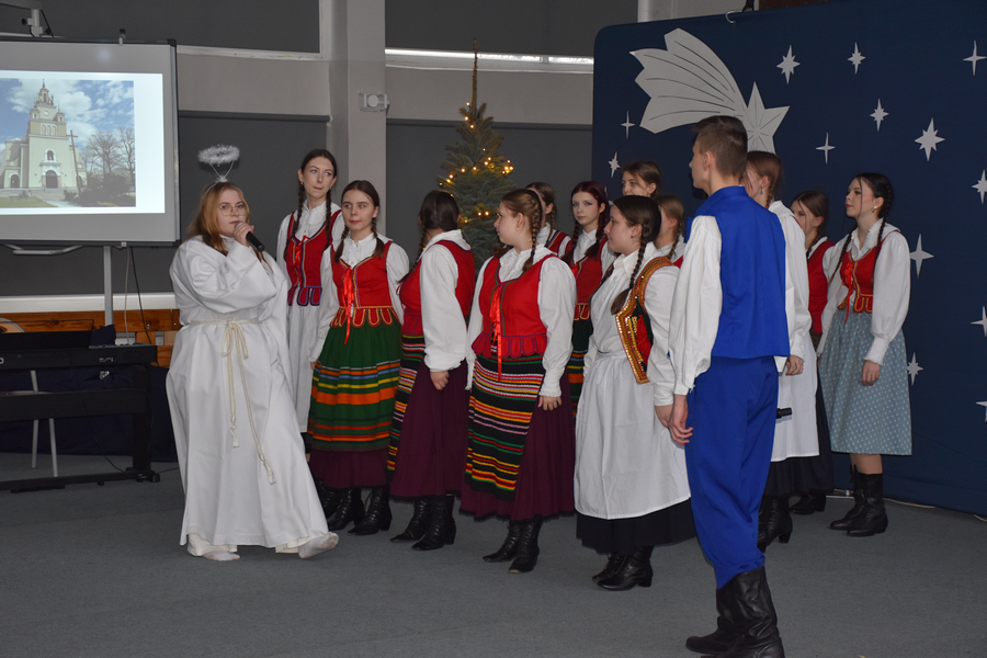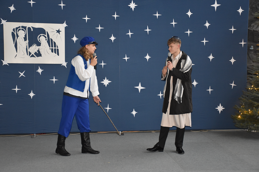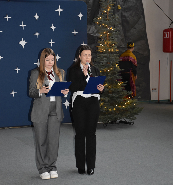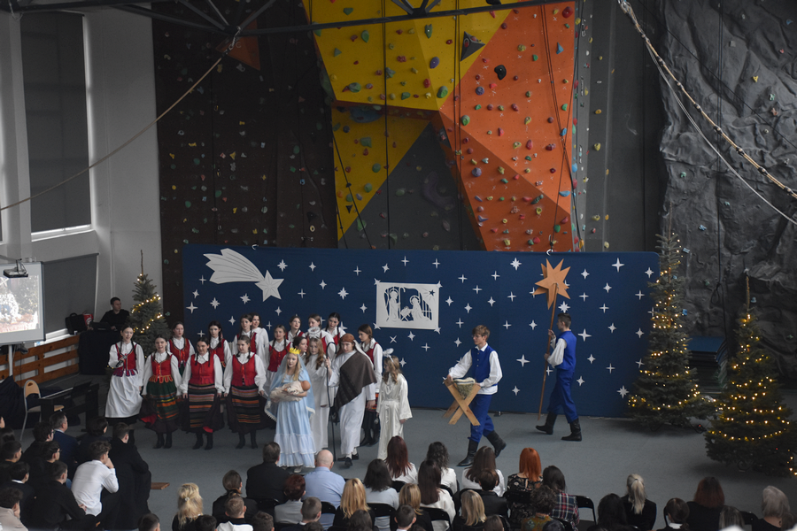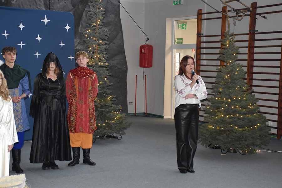 Tak rozpoczęło się spotkanie bożonarodzeniowe w naszej szkole, gromadzące gości, licznie zebranych uczniów, nauczycieli, pracowników administracyjnych.