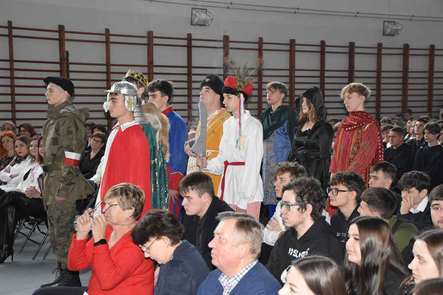 Nawiążemy do historii Polski – prezentując bogaty korowód, od pierwszego koronowanego władcy, po wypowiedź – wielkiego Świętego Papieża.