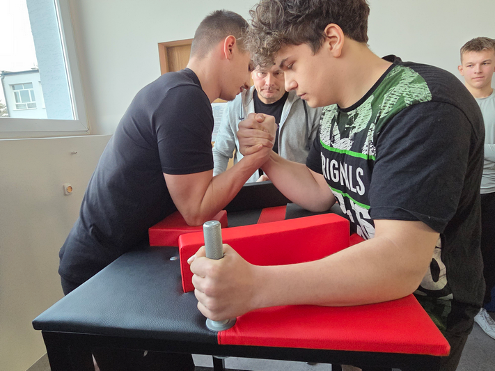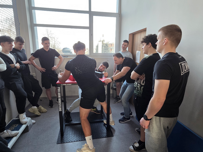 16 grudnia 2025r. w odbyły się szkolne zawody w siłowaniu na rękę. Zawodnicy mieli możliwość sprawdzenia swojej siły, jak również wykazania się techniką. Udział wzięło 11 uczniów, którzy rywalizowali systemem pucharowym. Najlepszy okazał się Budzik Krystian z kl IV TLw, drugie miejsce zajął Pucek Jarosław IV TI, trzecie miejsce Bugała Bartłomiej III A.