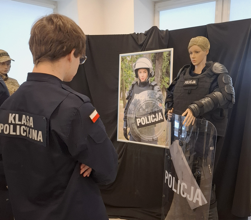Wystawa przybliżyła również współczesne oblicze Policji, to czym ta formacja dysponuje, jakiego rodzaju istnieją wyspecjalizowane służby w ramach Policji i to jak wygląda ścieżka rekrutacji i przyszłego awansu. Po zwiedzeniu muzeum uczniowie udali się do Komendy Głównej Policji, gdzie przed tablicą poświęconą poległym policjantom zapalili znicz, oddając hołd funkcjonariuszom, którzy zginęli na służbie.