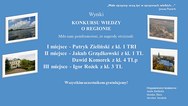 Wyniki Konkursu Wiedzy o Regionie