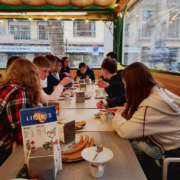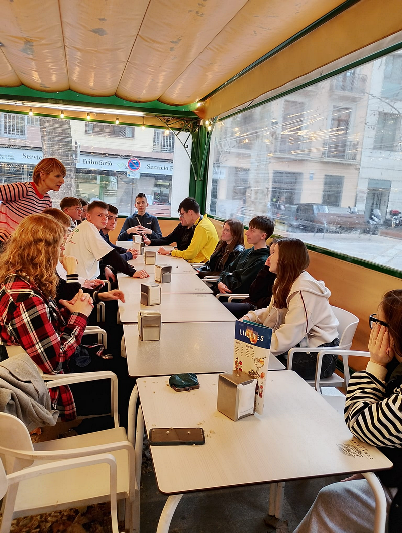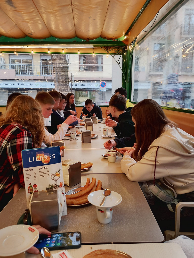 Nie mogło zabraknąć też integracji w prawdziwie hiszpańskim stylu. Odwiedziliśmy legendarną Cafe Futbol – kawiarnię z wieloletnimi tradycjami, gdzie zajadaliśmy się pysznymi, gorącymi churros z czekoladą. To był idealny moment, by na chwilę odpocząć i nacieszyć się smakami Grenady! 🍫😋