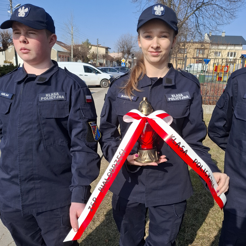 Podtrzymując szkolną tradycję, grupa uczniów klasy pierwszej o profilu policyjnym z Naszej szkoły udała się przed siedzibę Komendy Powiatowej Policji w Białobrzegach. W dowód pamięci i szacunku dla poległych za Ojczyznę, młodzież wysłuchała krótkiego rysu historycznego o formacjach mundurowych a następnie zapaliła znicz pod symboliczną tablicą pamiątkową.