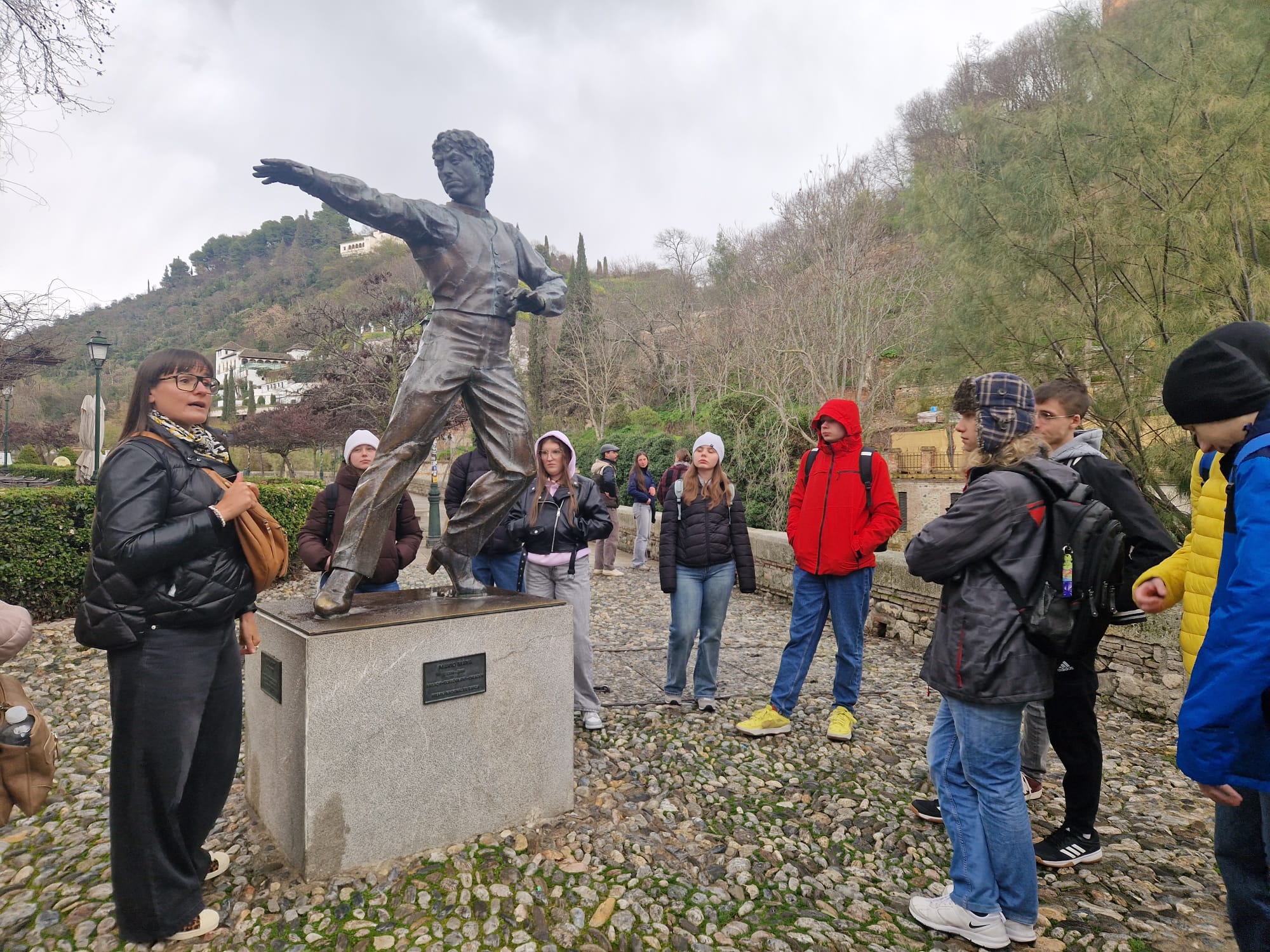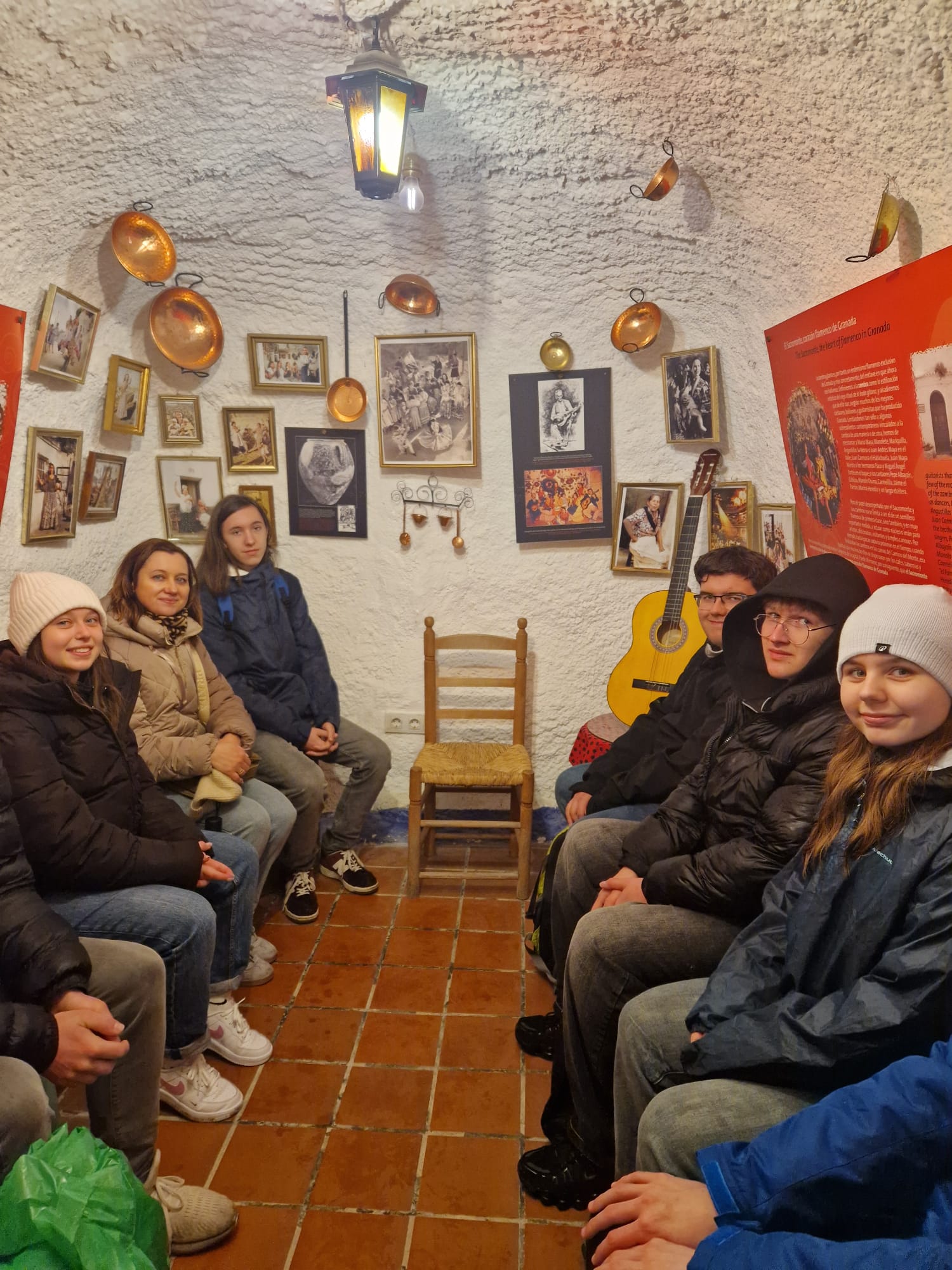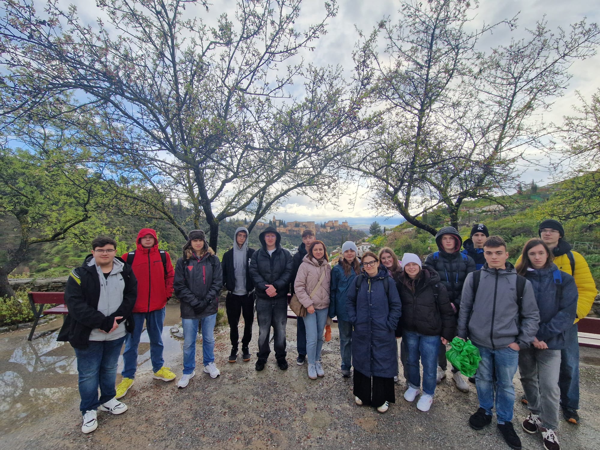 Odwiedziliśmy również dzielnicę Sacromonte, znaną z wyjątkowych domów wykutych w skałach oraz pięknych widoków na miasto i Alhambrę. Choć w trakcie spaceru złapał nas lekki deszcz, nie popsuło to naszej wycieczki – wręcz przeciwnie, dodało jej nieco przygody. Mimo pogody świetnie się bawiliśmy i była to kolejna okazja do wspólnego odkrywania uroków Andaluzji. Bogatsi o nowe doświadczenia, z energią wchodzimy w kolejne dni stażu!