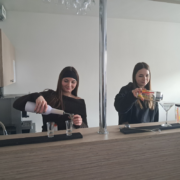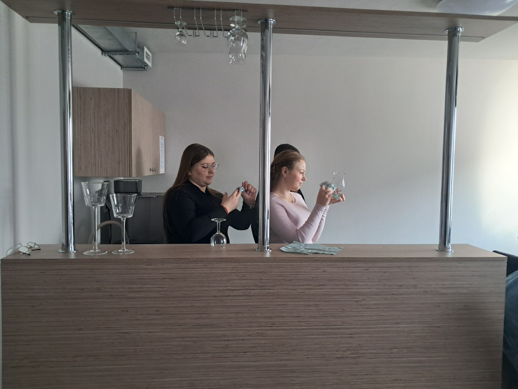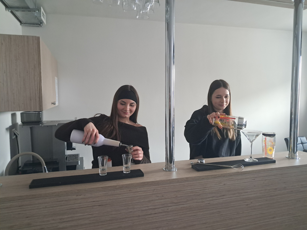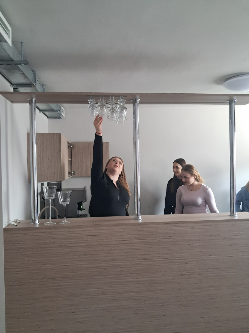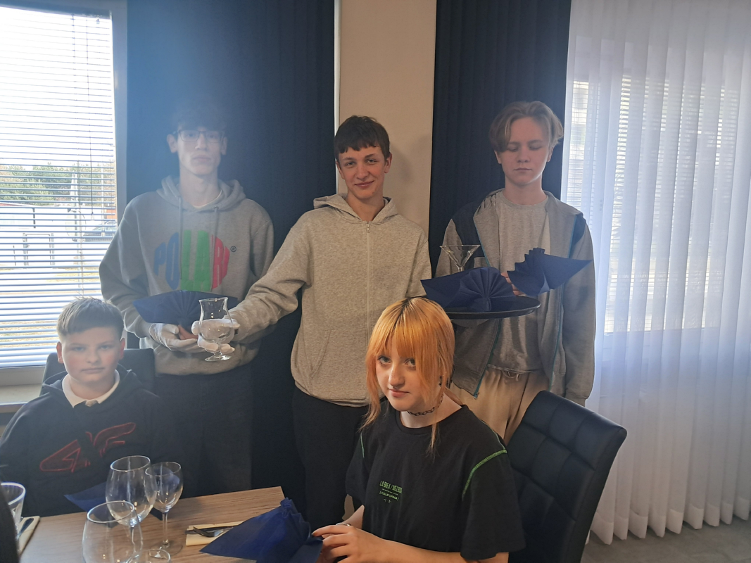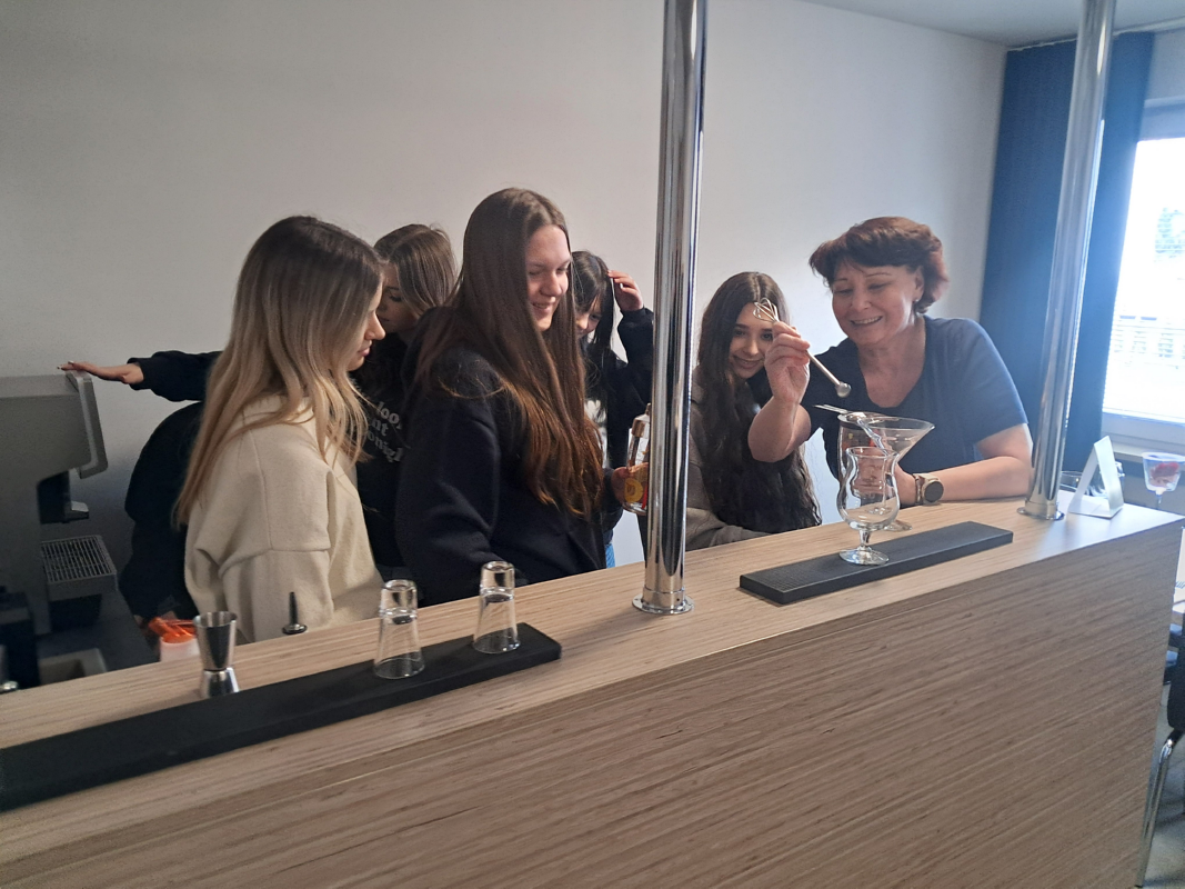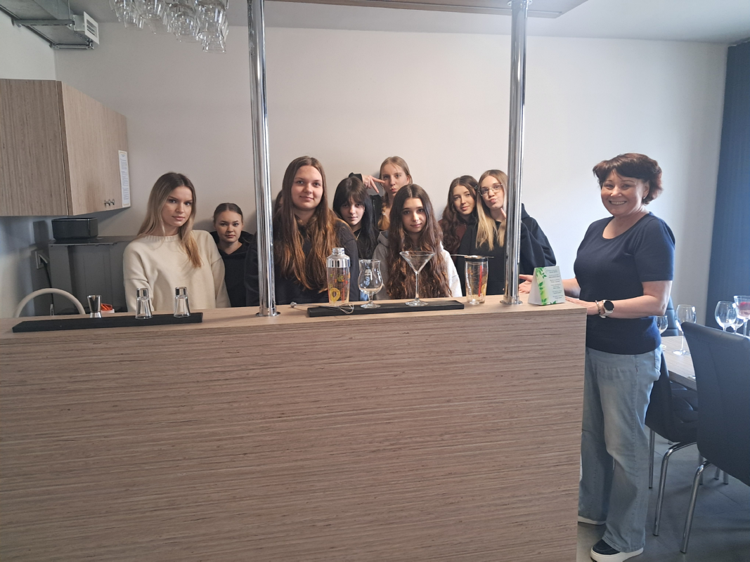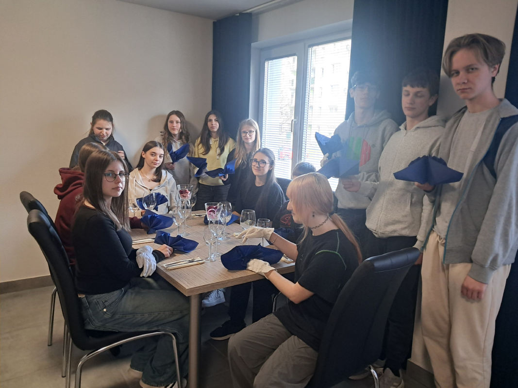 Trzy klasy I TH, III TH I IV TH pod opieka nauczycieli praktycznej nauki zawodu kształtowali swoje umiejętności zawodowe. Podczas zajęć z obsługi konsumenta wykorzystywano sprzęt barowy, a uczniowie ćwiczyli przy nowym barze pracowni. Klasa I ćwiczyła zakładanie i zdejmowanie obrusów a także łamanie/składanie serwetek oraz odpowiednie ich ułożenie.