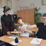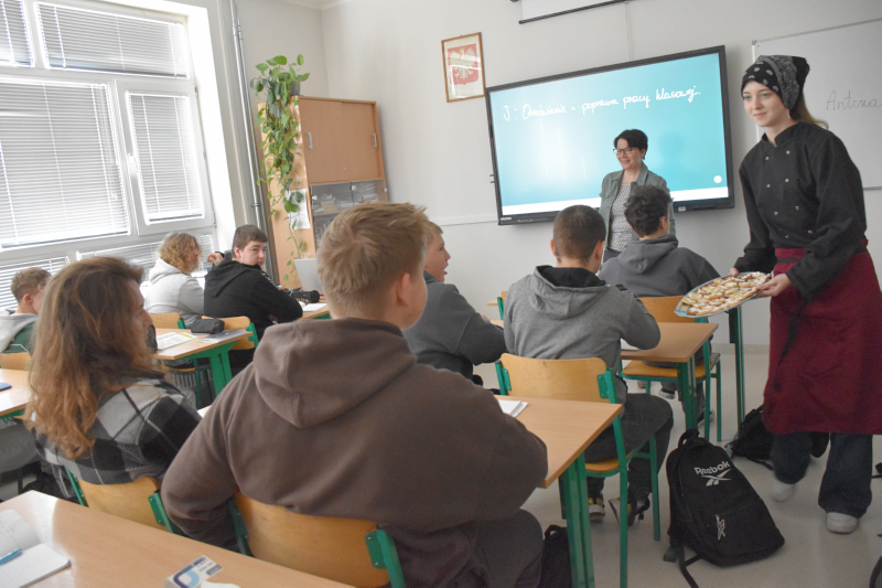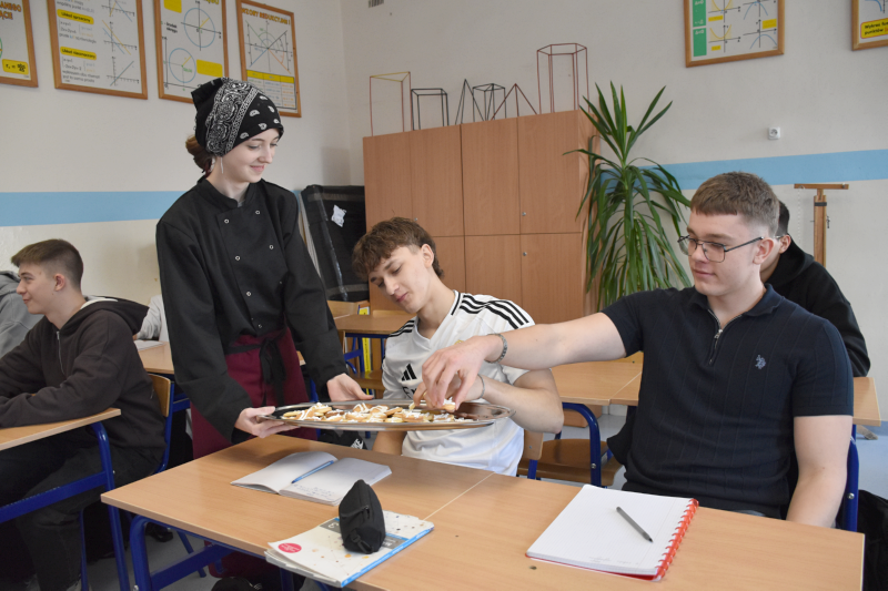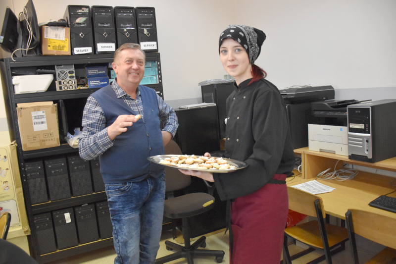 Klasy gastronomiczne włączyły się w świętowanie i przygotowały dla wszystkich uczniów szkoły poczęstunek – pyszne ciasteczka (dla ciała).