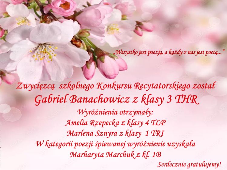 Zwycięzcą szkolnego Konkursu Recytatorskiego został