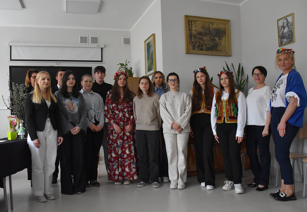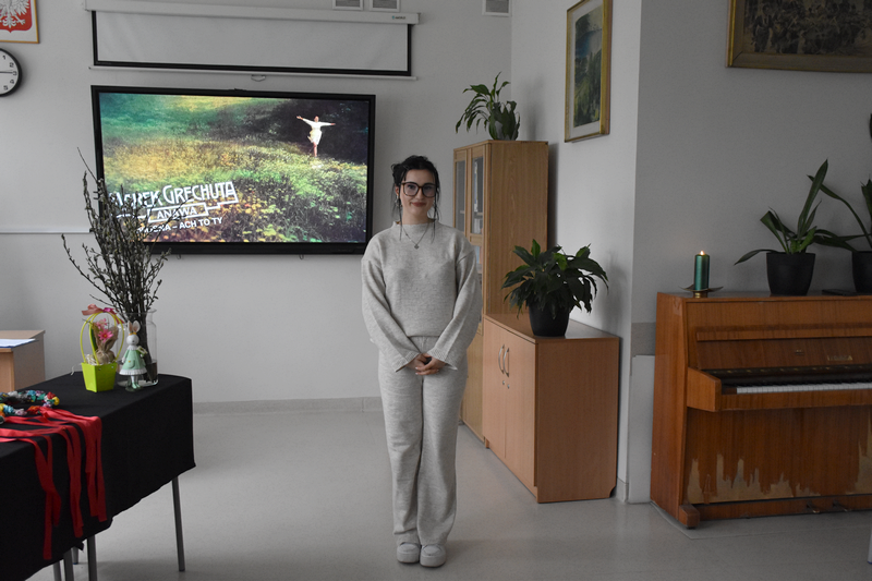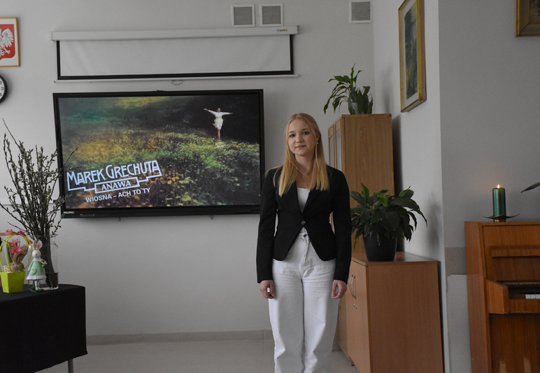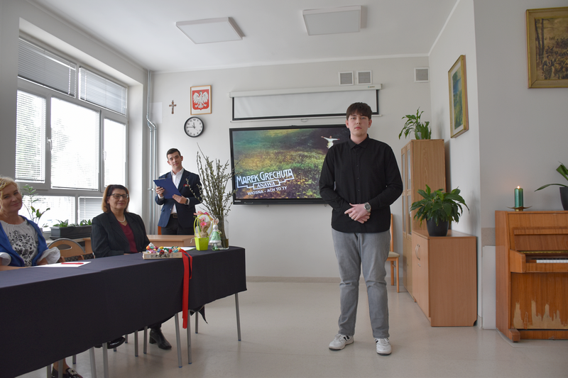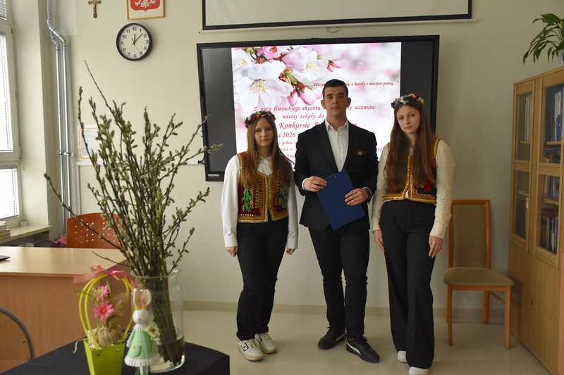 Na wysokości zadania stanęli również niezawodni konferansjerzy: Dawid Komorek, Zofia Lament, Kinga Fołtyn oraz Alicja Pakuła z klasy 4TLP, którzy prowadząc wydarzenie, zaprezentowali fragmenty wybranych tekstów kultury z literatury polskiej.