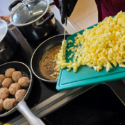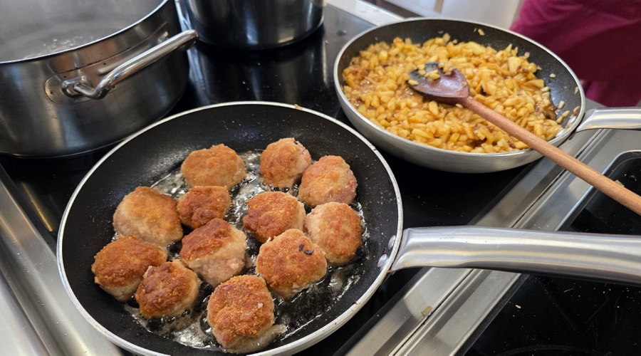 - Figatelle (Staropolskie Kotlety): Uczniowie własnoręcznie siekali mięso i formowali kulki z dodatkiem rodzynek, zgodnie z instrukcją „usiekaj drobno” i „przydasz rożenków”.