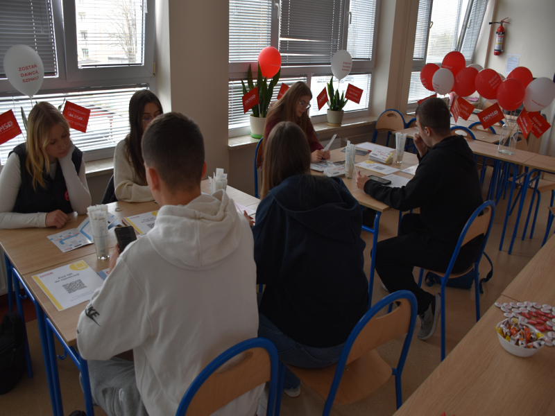 W ramach przygotowań do akcji pełnoletni uczniowie uczestniczyli w zajęciach edukacyjnych prowadzonych przez szkolnego koordynatora, p. Edytę Wojdyr. Podczas spotkań poznali zasady kwalifikacji dawców, metody pobrania materiału, a także działalność