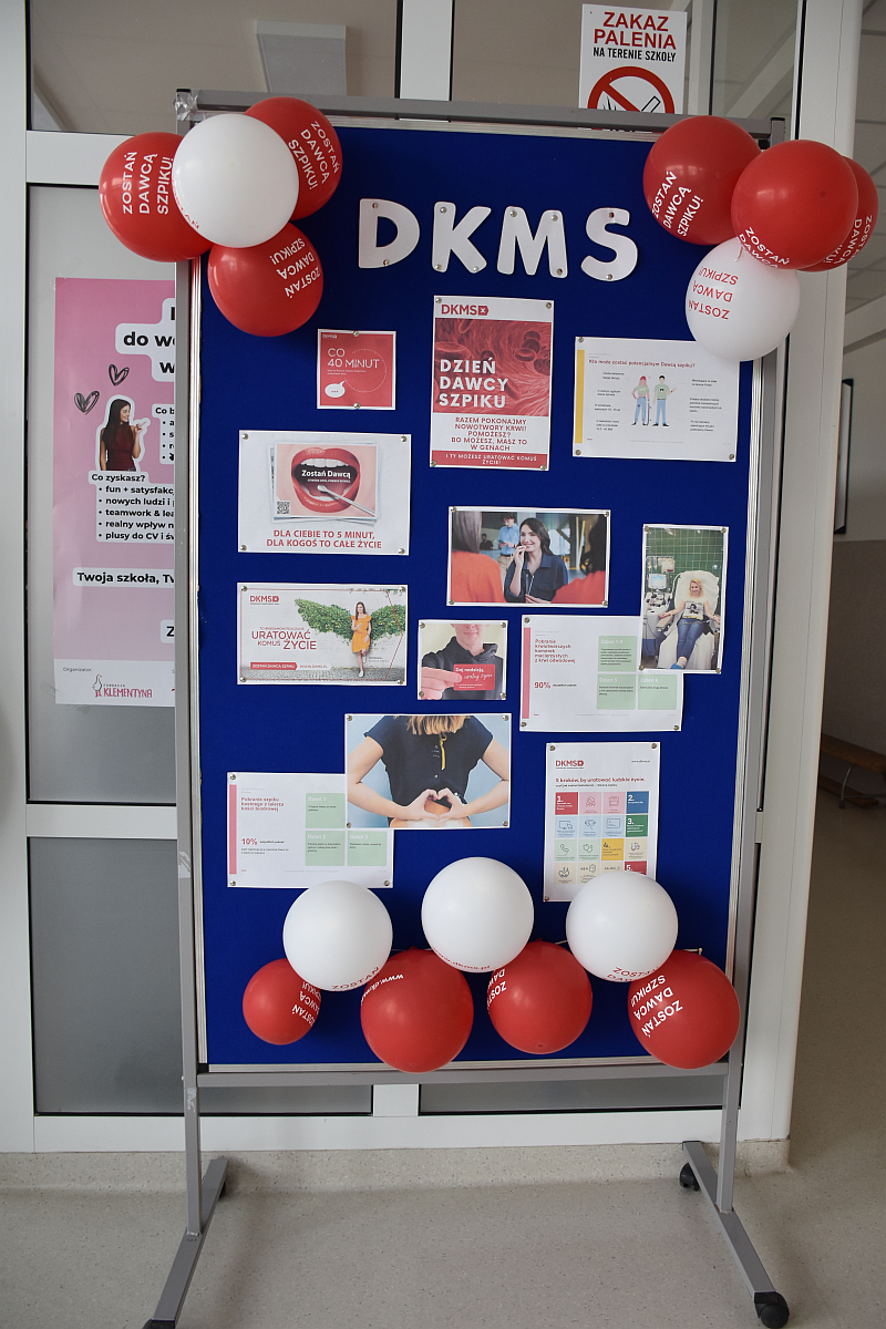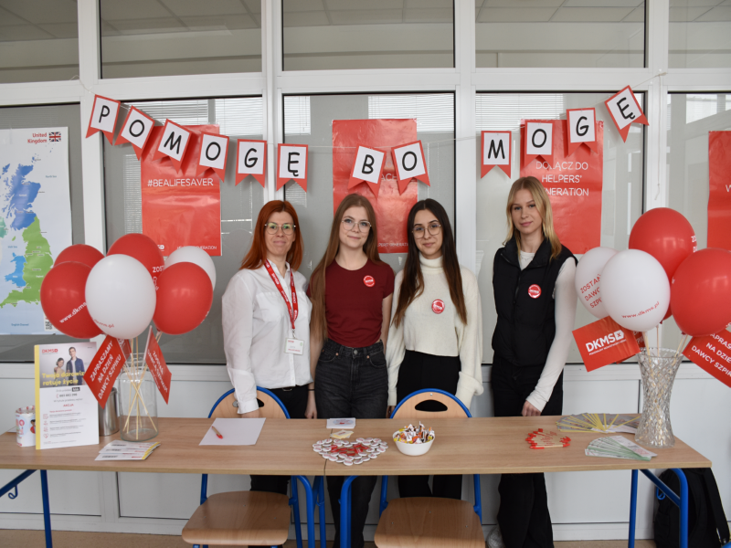 W dniu 14 kwietnia 2026 r. w naszej szkole odbył się Szkolny Dzień Dawcy Szpiku, zorganizowany we współpracy z Fundacją DKMS. Wydarzenie stanowiło podsumowanie działań realizowanych w ramach ogólnopolskiego projektu #Komórkomania, którego celem jest szerzenie wiedzy na temat dawstwa szpiku i komórek macierzystych oraz zachęcanie do rejestracji nowych potencjalnych dawców.