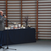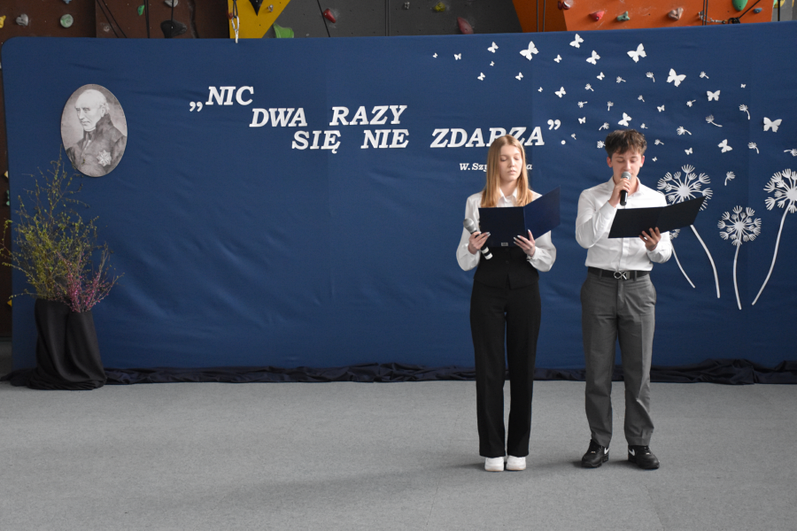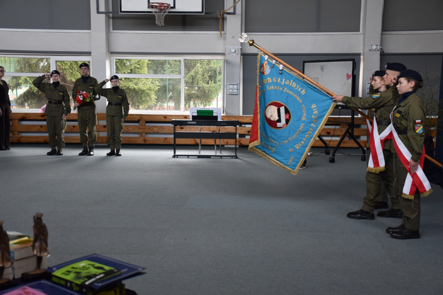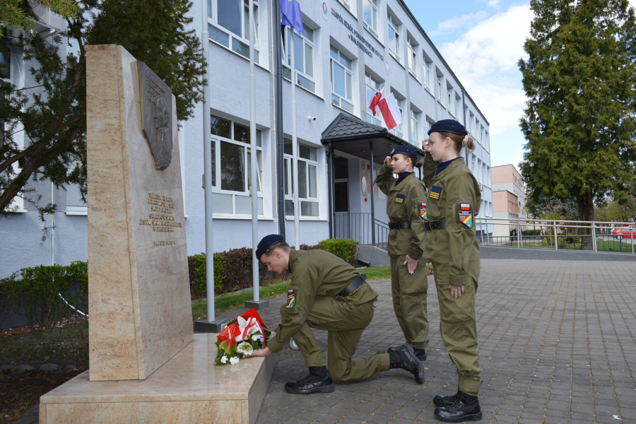 Uroczystość rozpoczęła się od złożenia meldunku przez przewodniczącego Samorządu Uczniowskiego Dawida Komorka oraz wprowadzenia sztandaru szkoły. Wszyscy zgromadzeni z powagą odśpiewali hymn, podkreślając podniosły charakter wydarzenia, po czym delegacja uczniów złożyła kwiaty pod pomnikiem patrona szkoły – Stanisława Staszica, oddając hołd jego dziedzictwu i wartościom, które od lat stanowią fundament wychowania kolejnych pokoleń młodzieży.
