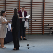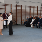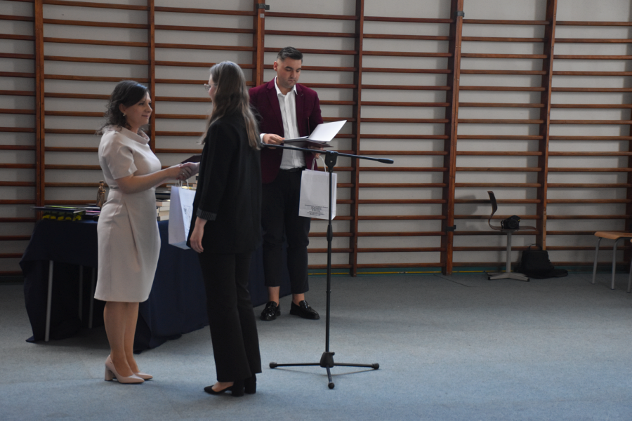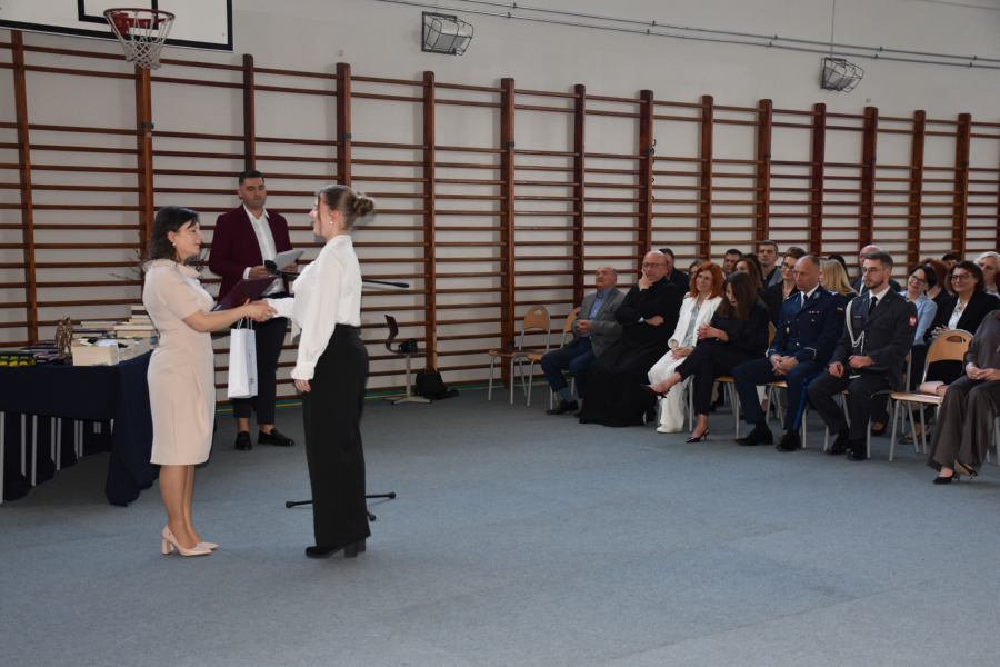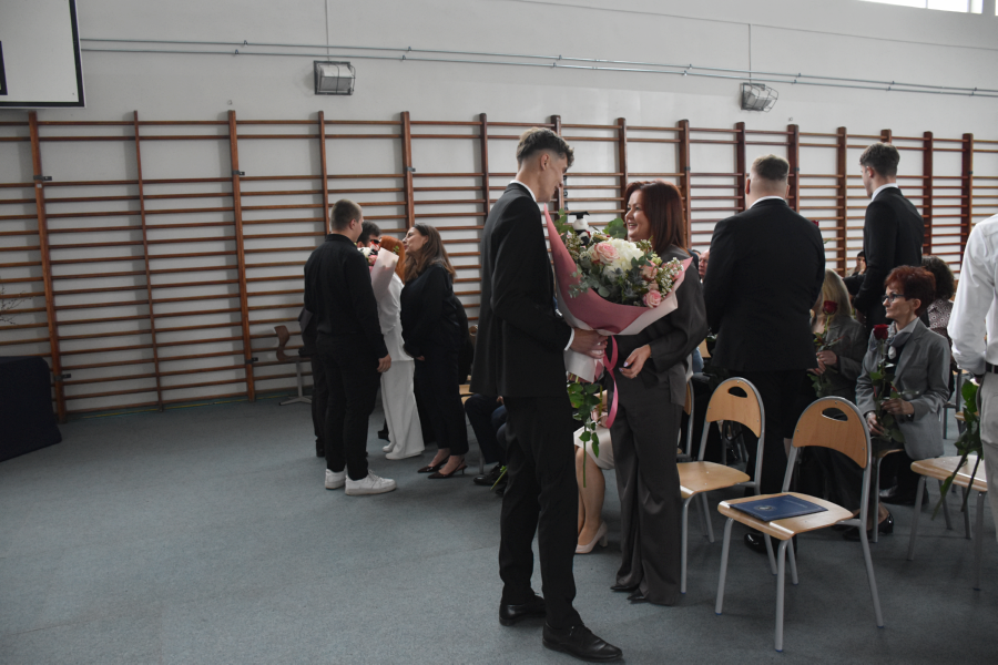 Po części oficjalnej przyszedł czas na wręczenie świadectw poszczególnym klasom. Absolwenci odbierali dokumenty z rąk pani dyrektor i wychowawców, co było symbolicznym zakończeniem ich szkolnej drogi.