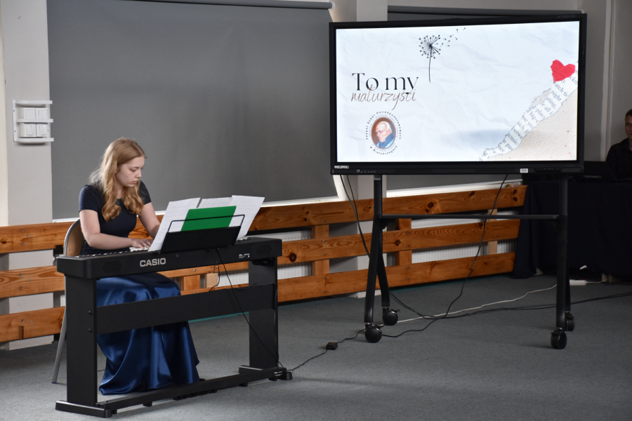 Na zakończenie uroczystości głos zabrali przedstawiciele klas maturalnych, którzy w ciepłych słowach, pełnych wspomnień, pożegnali się ze społecznością szkolną. Klasy młodsze ze wzruszeniem podziękowały za wspólną drogę – Iza zagrała nostalgiczny utwór na pianinie, Milena i Krzysztof skierowali słowa wdzięczności do absolwentów Technikum, a Magda, Natalia i Gabrysia przypomniały, że „nic dwa razy się nie zdarza”, prezentując utwór w aranżacji Sanah. Całość dopełniła prezentacja slajdów ukazujących najważniejsze momenty z ostatnich pięciu lat życia naszych abiturientów.