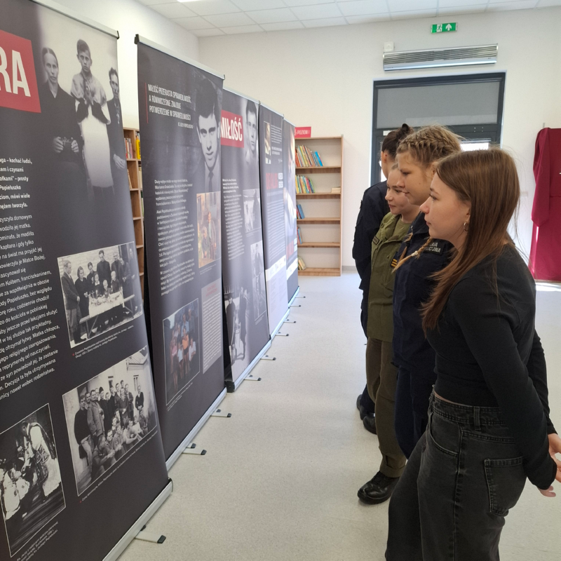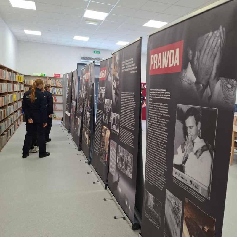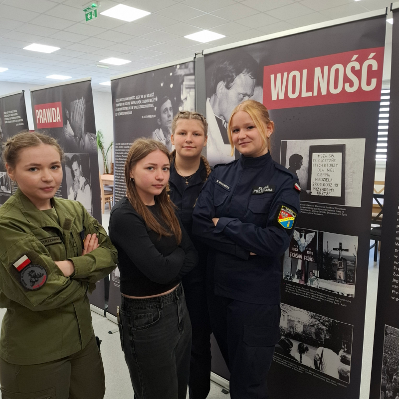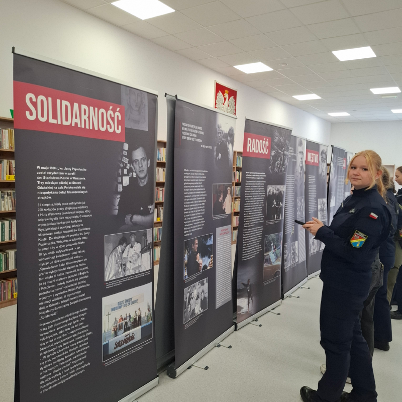W dniu 27 kwietnia, nasze uczennice miału możliwość zwiedzenia poruszającej wystawy poświęconej księdzu Jerzemu Popiełuszce. Wystawa została zorganizowana przez białostocki Instytut pamięci Narodowej, a jej miejscem była filia biblioteki publicznej w Skrzynnie. Dzięki udostępnieniu licznych materiałów archiwalnych, zarówno przez IPN jak i rodzinę księdza, młodzież mogła bliżej poznać losy kapelana „Solidarności”, którego niezłomna postawa i przesłanie „zło dobrem zwyciężaj” stały się symbolem walki o wolną Polskę.