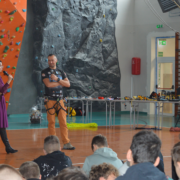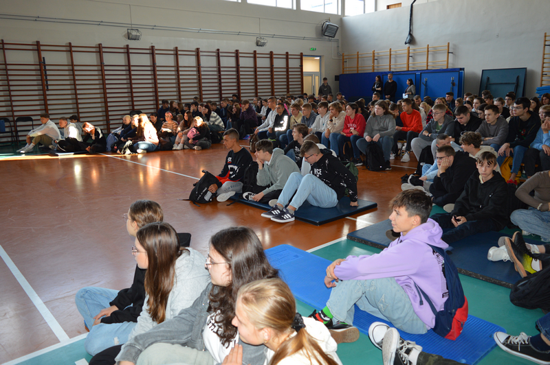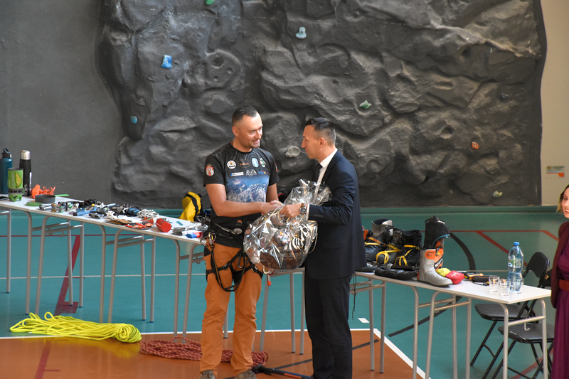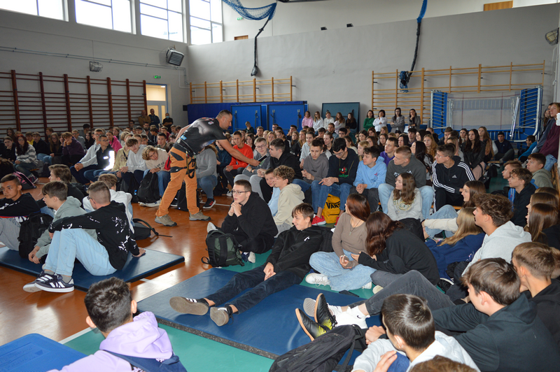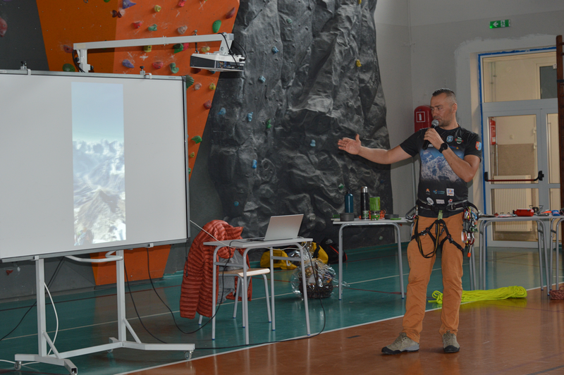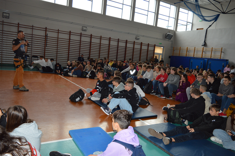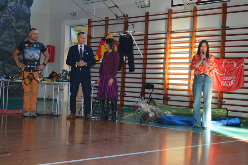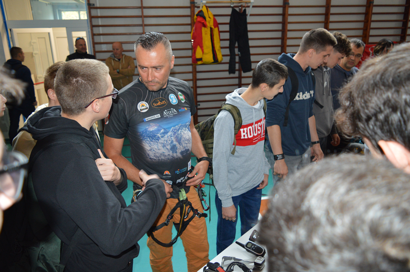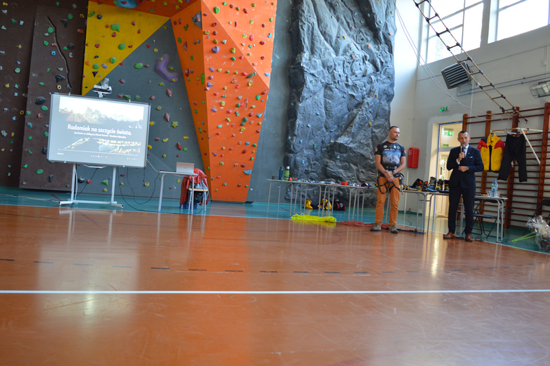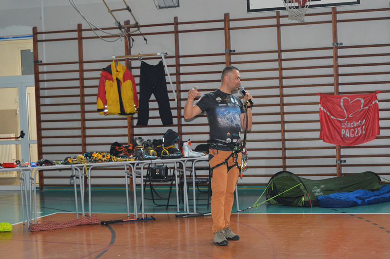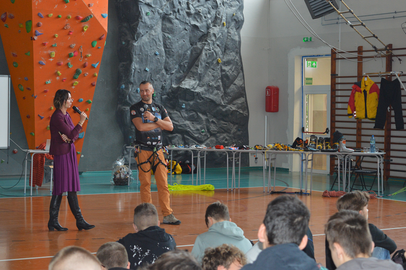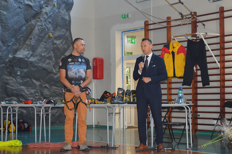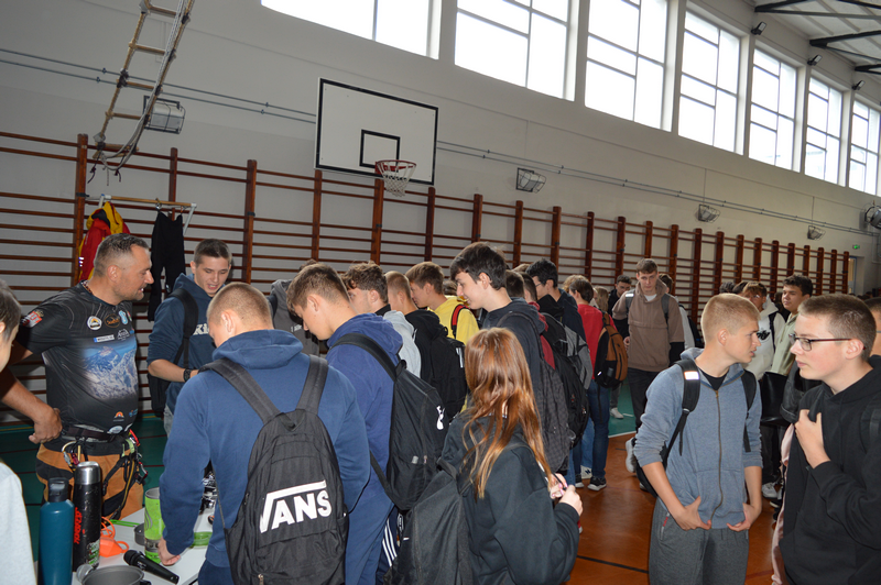 W dniu 8 października gościliśmy w naszej szkole osobę niezwykłą, wybitną, człowieka pasji i ogromnych wyzwań – Pana Karola Adamskiego, himalaistę z Radomia. Posiada on ponad 20 lat doświadczenia górskiego, a od ponad 10 lat uczestniczy jako lider wypraw w górach wysokich. Wielokrotnie zdobywał szczyty Korony Ziemi: Elbrus, Kazbek, Mont Blanc, Kilimandżaro, Aconcagua, Chimborazo, Antisana, Cotopaxi czy Matterhorn, Ama Dablam. Jako pierwszy Polak zdobył szczyt Cayambe – wulkan ekwadorski. Wspinał się na 4 kontynentach: w Himalajach, Andach, Kaukazie, Alpach, Górach Afryki, Dolomitach, Taurach. Nasi uczniowie wysłuchali fascynujących historii oraz doświadczeń związanych ze wspinaczką wysokogórską. Pan Karol zaprezentował serię filmów, w których dokumentował swoje ekspedycje, pokazywał specjalistyczny sprzęt alpinistyczny, który niezbędny jest podczas zdobywania najwyższych szczytów świata. Podczas prelekcji dzielił się nie tylko technicznymi aspektami wspinaczki, ale również osobistymi refleksjami, podkreślając znaczenie obecności i pomocy drugiej osoby w ekstremalnych warunkach. Przypomniał wszystkim uczniom, że aby pokonać górę, trzeba stać się górą – nie tylko podczas ekspedycji, ale również w dążeniu do realizacji własnych celów życiowych, a w szczególności zdobywania wiedzy podczas nauki w szkole.