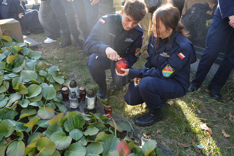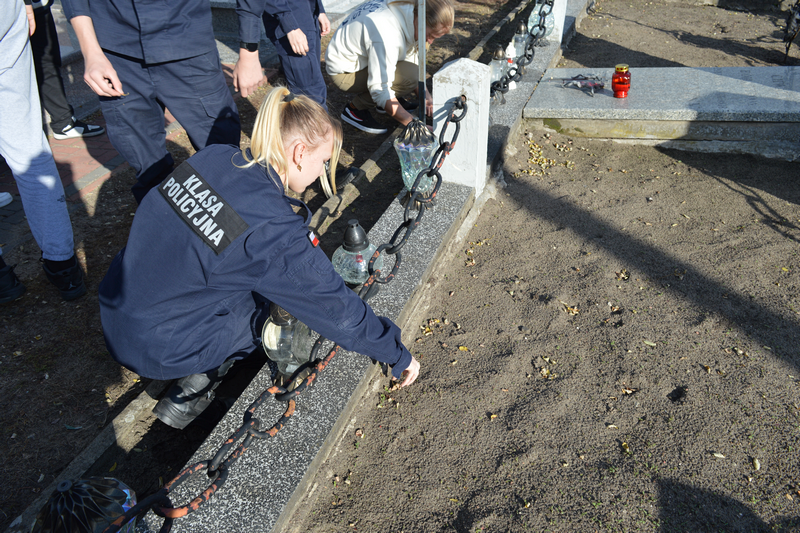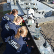 To już tradycja, że przed dniem Wszystkich Świętych uczniowie klas mundurowych biorą udział w akcji „Mundurowa Pamięć”. To wyjątkowy czas, w którym wracamy myślami do przeszłości, by w chwilach zadumy i wspomnień przywołać sylwetki tych, co odeszli. W tym wyjątkowym czasie klasa 3 TLp pod opieką wychowawcy odwiedziła mogiły poległych za wolność Ojczyzny. Uporządkowali nagrobki, zapalili znicze oraz uczcili ich pamięć chwilą ciszy i krótką modlitwą. Swoją postawą potwierdzili umiłowanie Ojczyzny oraz przywiązanie do tradycji narodowych. Pamięć o polskich bohaterach i ich dokonaniach przetrwa w kolejnych pokoleniach Polaków.