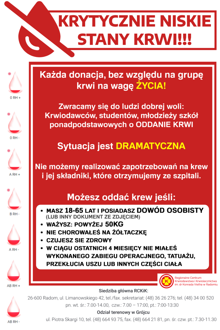 Apel do ludzi dobrej woli o oddanie krwi!