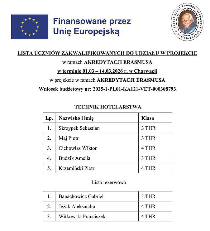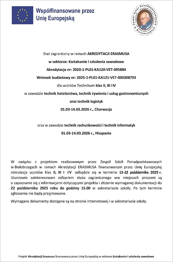 do udziału w projekcie w ramach AKREDYTACJI ERASMUSA