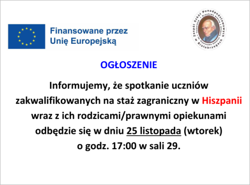 Spotkanie uczniów i ich rodziców w sprawie stażu zagranicznego w Hiszpanii